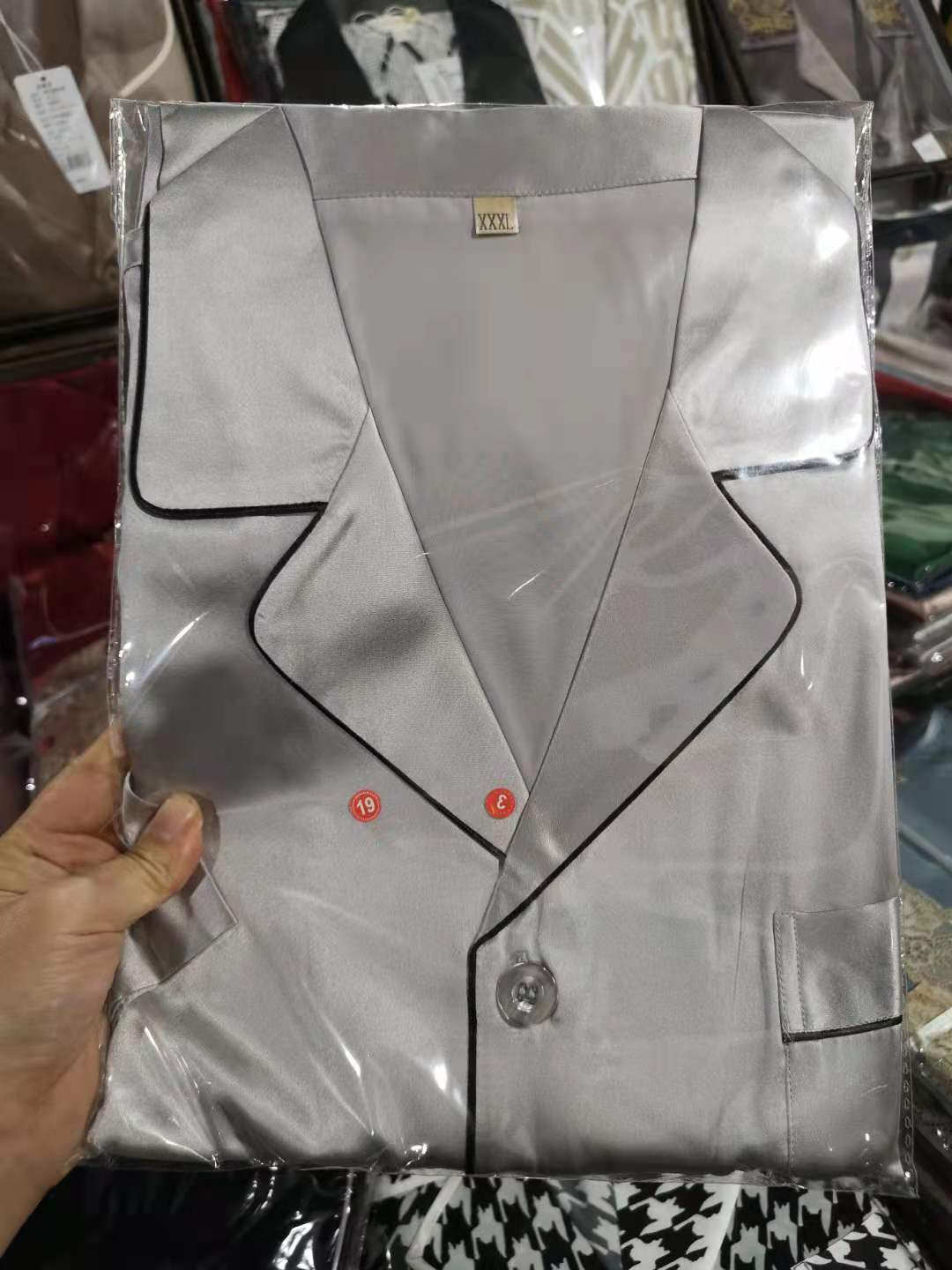 여름 남성용 실크 잠옷 반팔 중간 길이 바지 투피스 얇은 쿨 핏 누에 실크 홈 의류스토어 가기