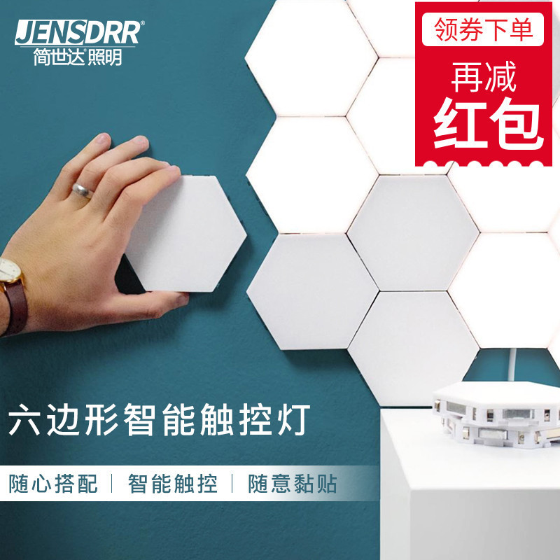 지능형 LED 접합 핸드 터치 사각형 모듈 유도 벽 램프 육각 거실 침실 침대 옆 조합 야간 조명