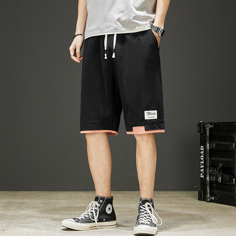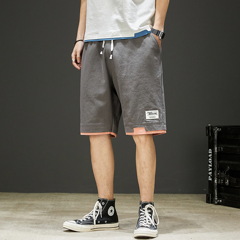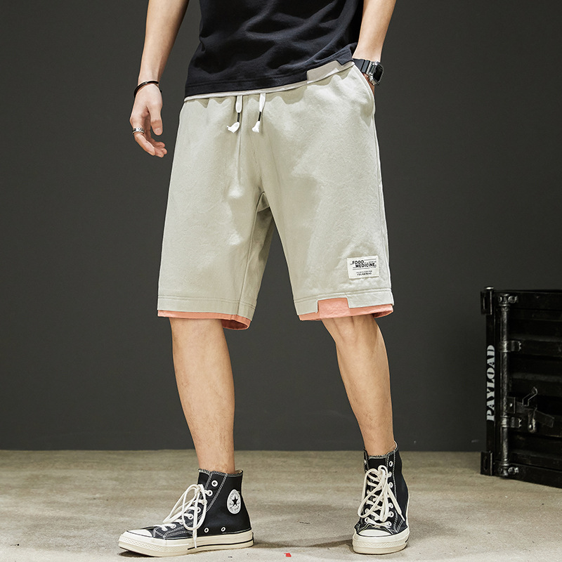 퓨어 코튼 반바지 남성용 2023 신상품 십대 바지 홍콩 스타일 트렌디 툴링 비치 팬츠 스포츠 캐주얼 바지