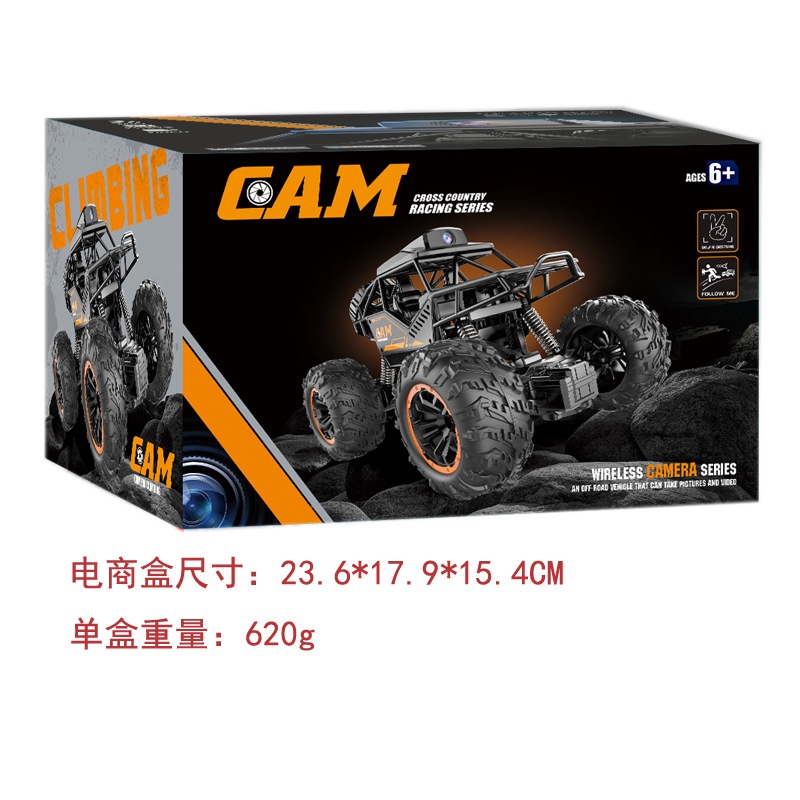 【功能描述】:2.4G频段无线遥控、抗干扰可多台独立控制、合金架构车身、减震弹簧及越野轮胎,仿真比例车型适配大多数场景地形。装载高清摄像头模块,搭配app软件可实现视频回传及手机界面操控,视频及图像均存储至手机中可随时查看,手势感应拍照"