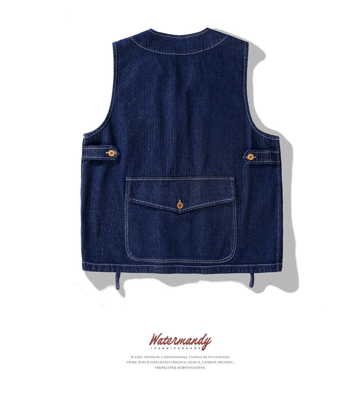 레트로 데님 조끼 순수 미국 씻어 전술 조끼 카지 무거운 무게 설정 zhi 작업복 코트 남자스토어 가기