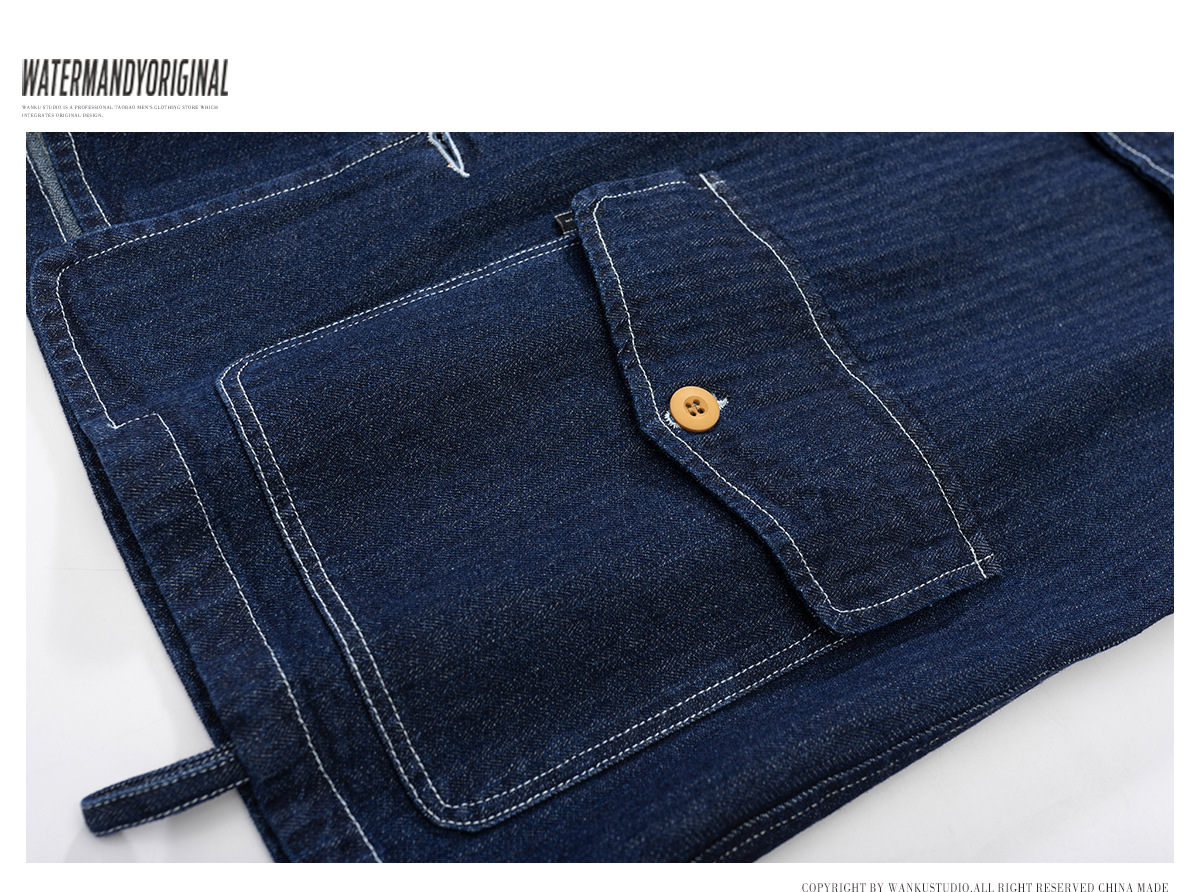 레트로 데님 조끼 순수 미국 씻어 전술 조끼 카지 무거운 무게 설정 zhi 작업복 코트 남자
