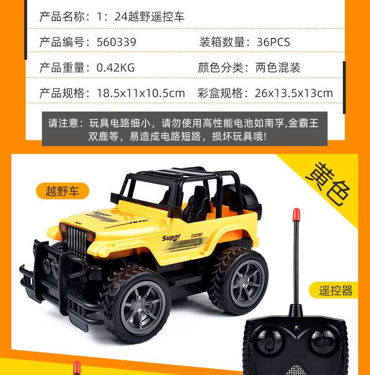 1:24 원격 제어 오프로드 차량 조명 지프 모델 4 방향 원격 제어 자동차 소년 장난감 메이커 공급 도매스토어 가기