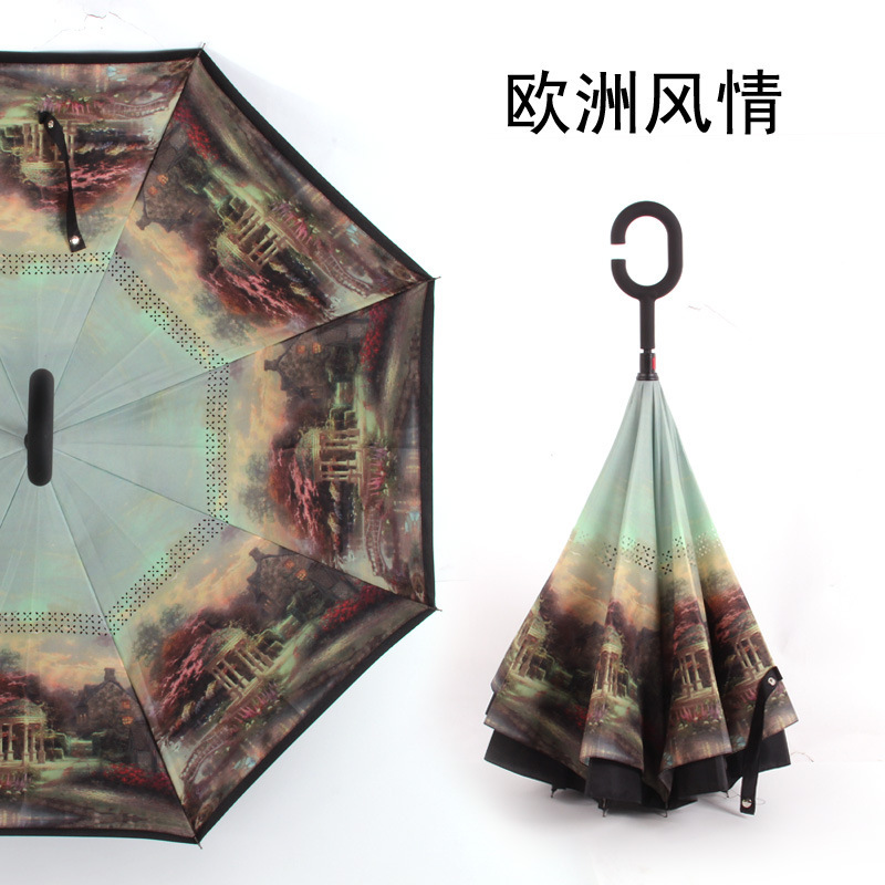 역 우산 손잡이 무료 우산 긴 손잡이 역 우산 자동차 우산 특수 우산 맑은 비 이중 사용 우산 이중층 우산 광고 우산