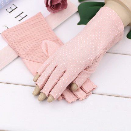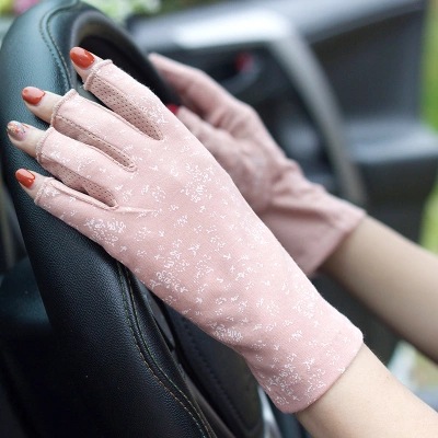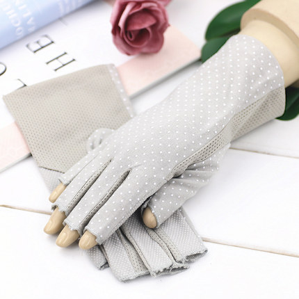 여름 태양 보호 장갑 하프 핑거 여성용 짧은 자외선 차단 운전 초박형 사이클링 손가락 누출 순면 손가락 타기스토어 가기
