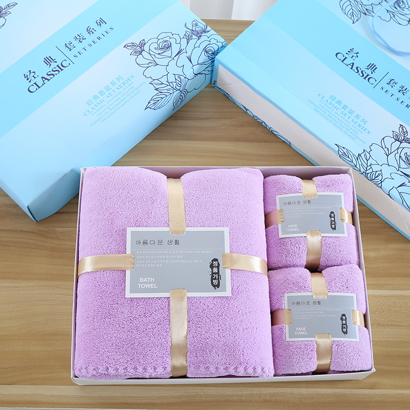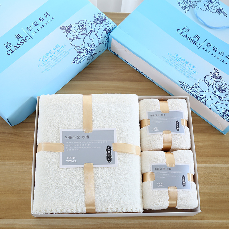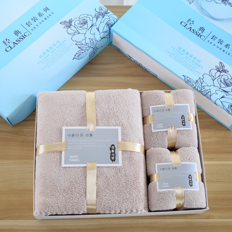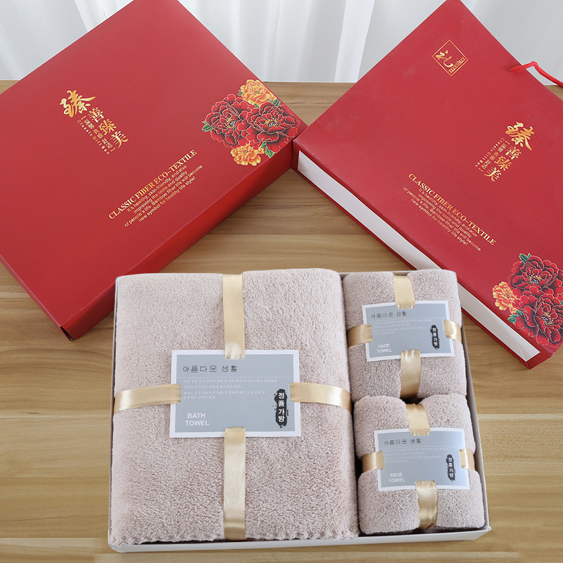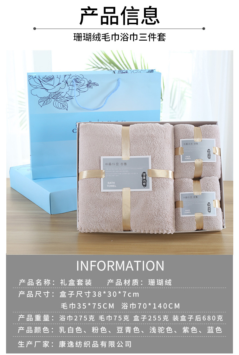 손 선물 타월 목욕 타월 세트 선물 상자 기업 선물 도매 산호 양털 흡수 타월 목욕 타월 3 종 세트스토어 가기