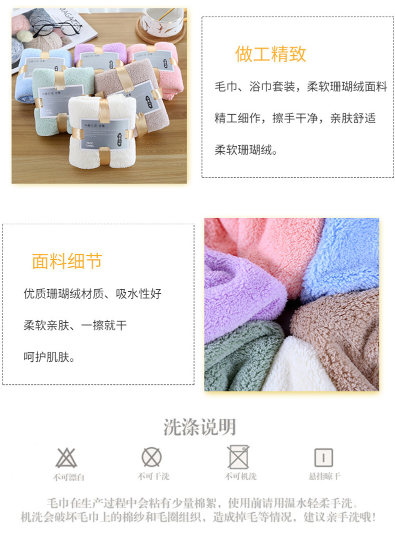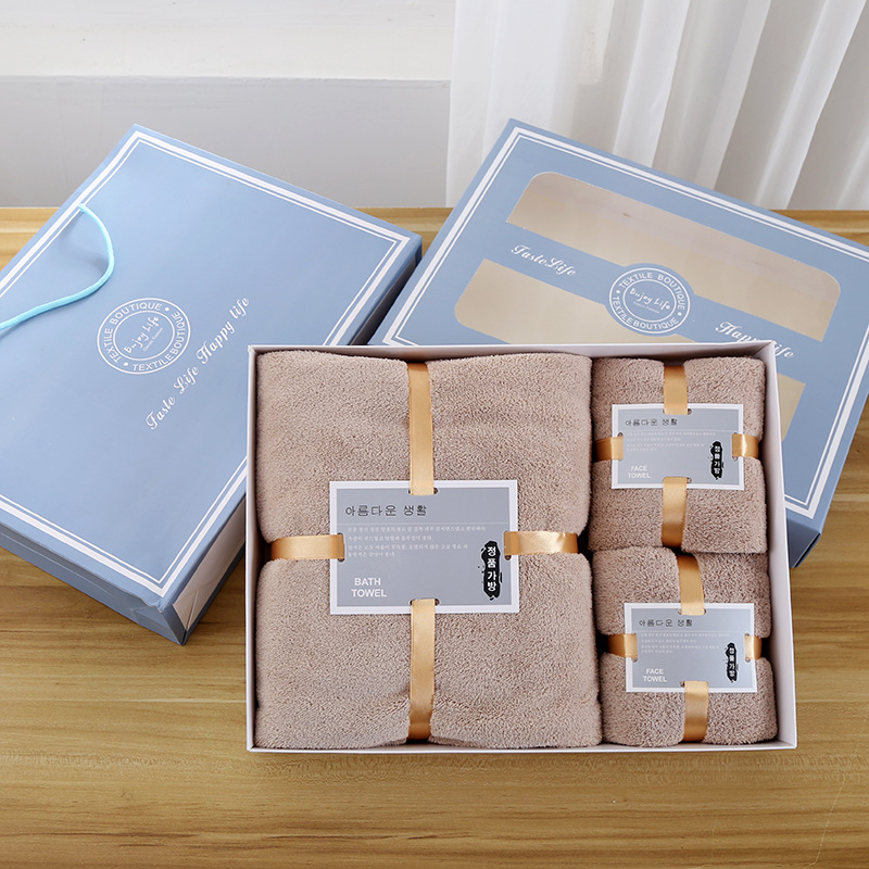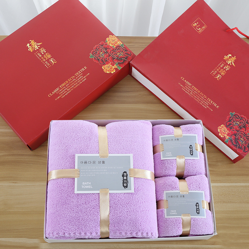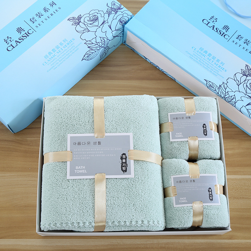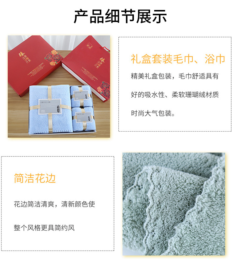 손 선물 타월 목욕 타월 세트 선물 상자 기업 선물 도매 산호 양털 흡수 타월 목욕 타월 3 종 세트스토어 가기