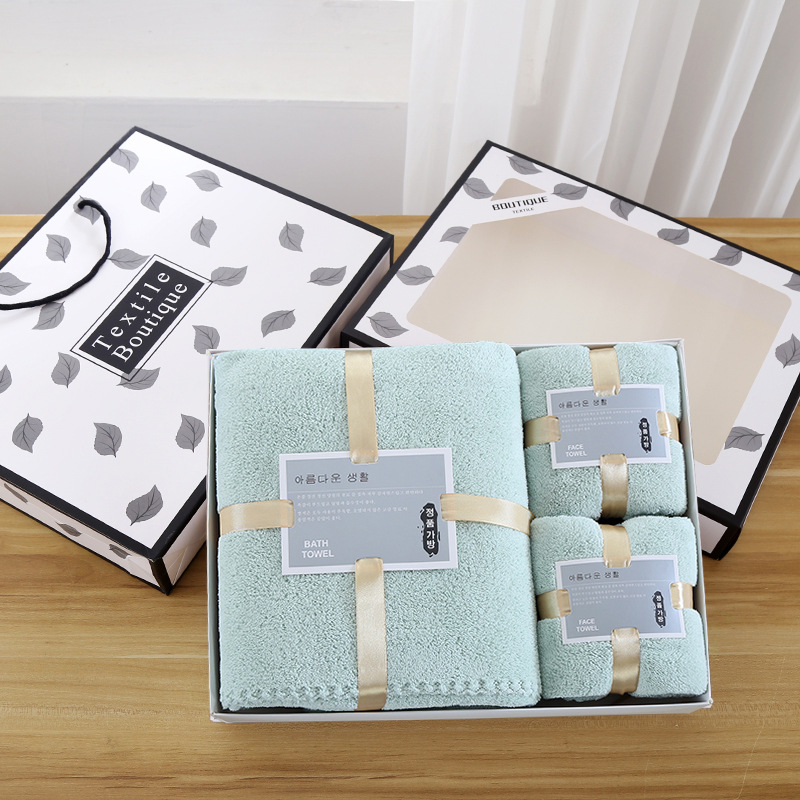 손 선물 타월 목욕 타월 세트 선물 상자 기업 선물 도매 산호 양털 흡수 타월 목욕 타월 3 종 세트