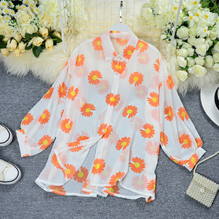 몰디브 해변 휴가 경량 주름 쉬폰 카디건 중간 길이 얇은 느슨한 플러스 사이즈 태양 보호 의류스토어 가기
