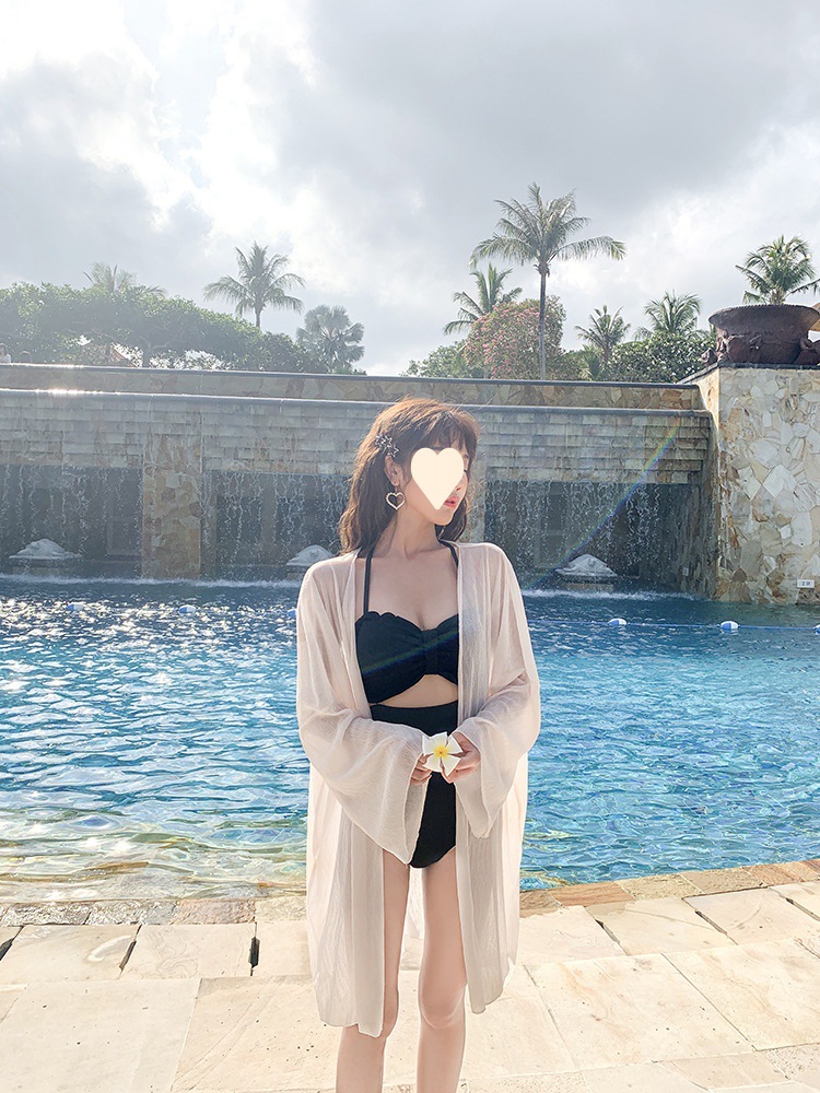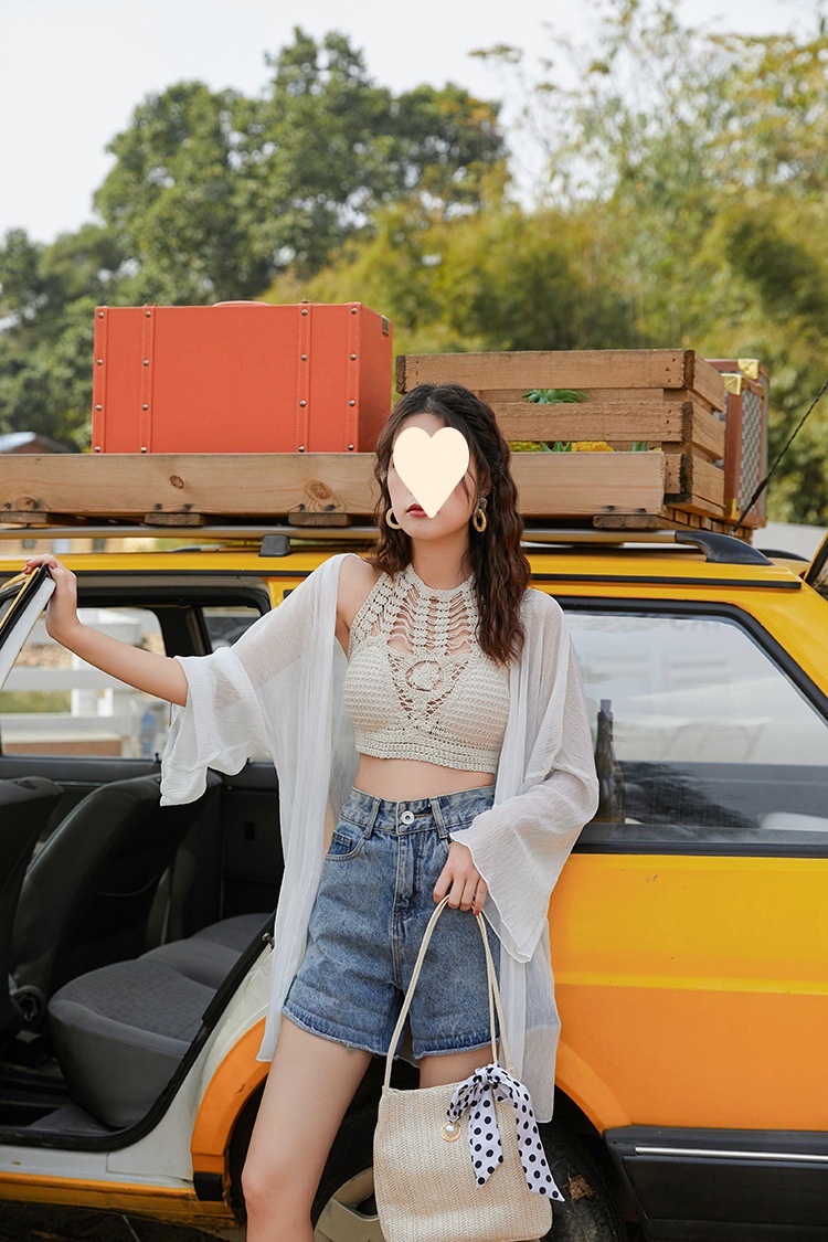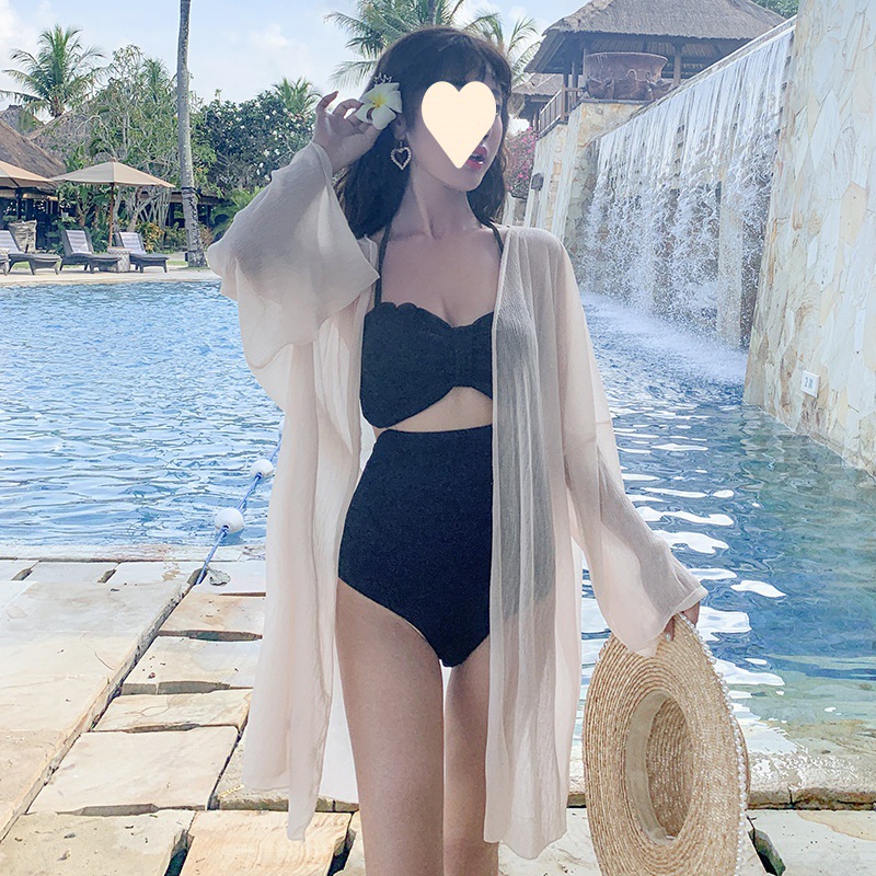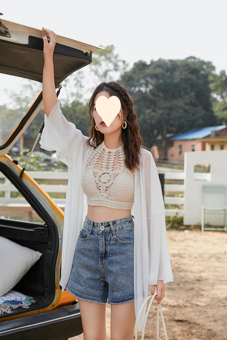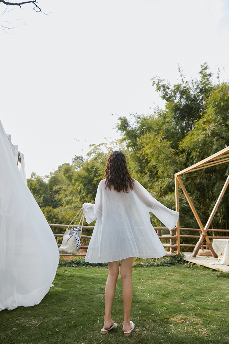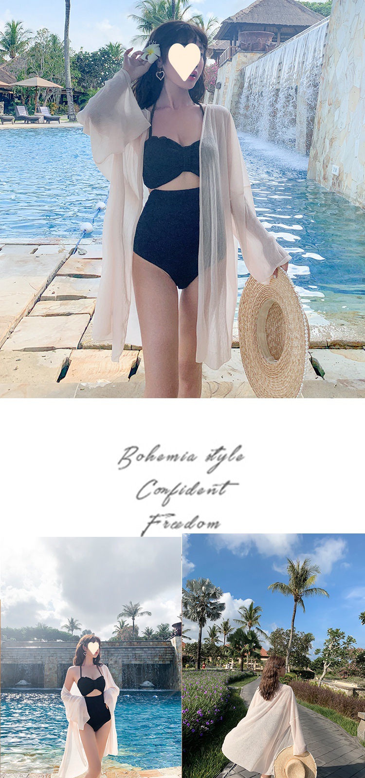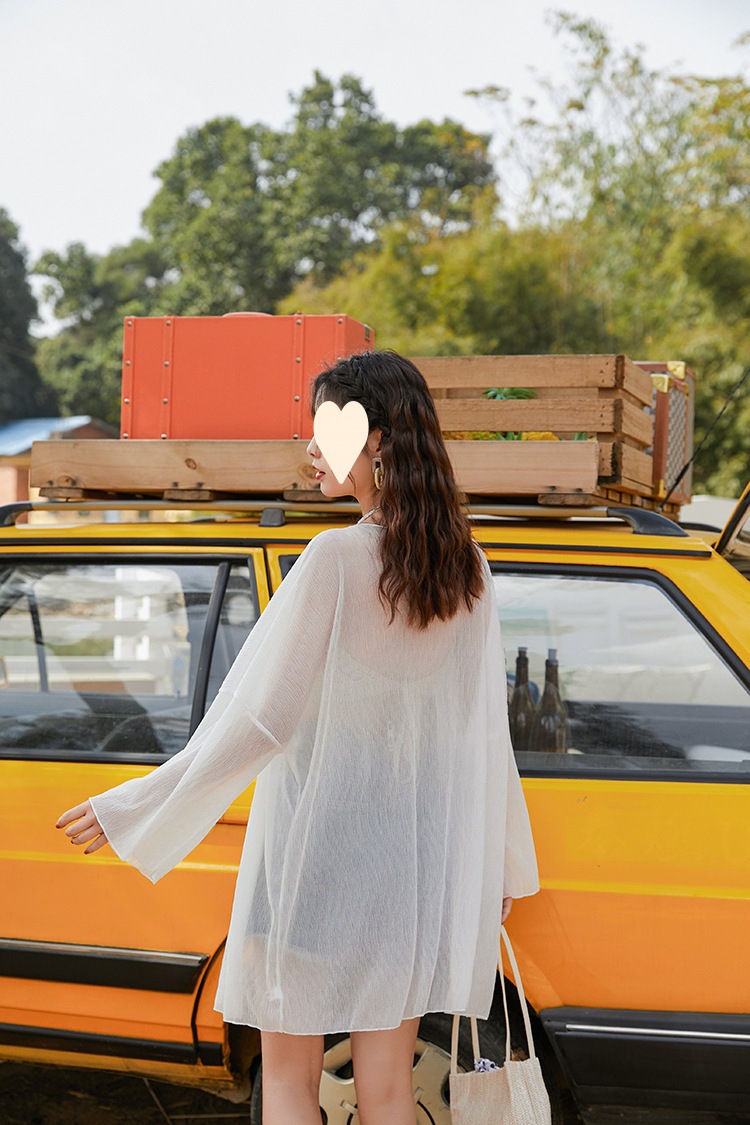 몰디브 해변 휴가 경량 주름 쉬폰 카디건 중간 길이 얇은 느슨한 플러스 사이즈 태양 보호 의류