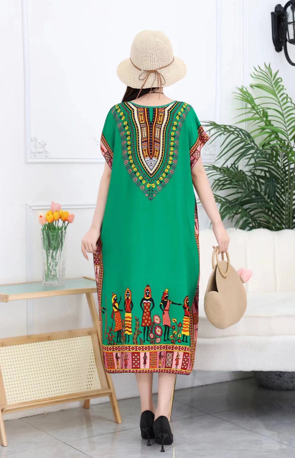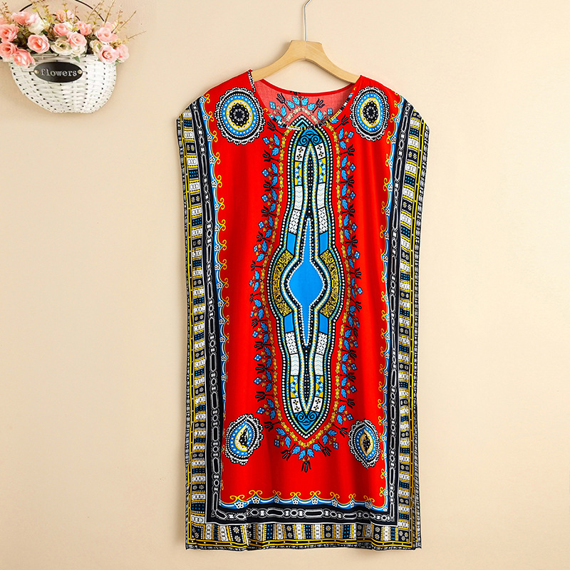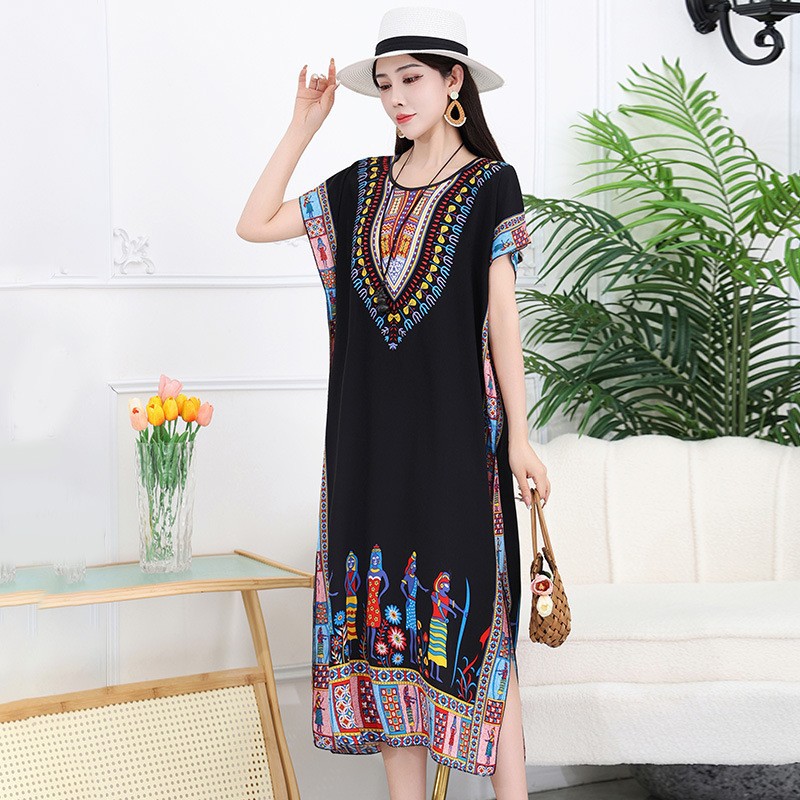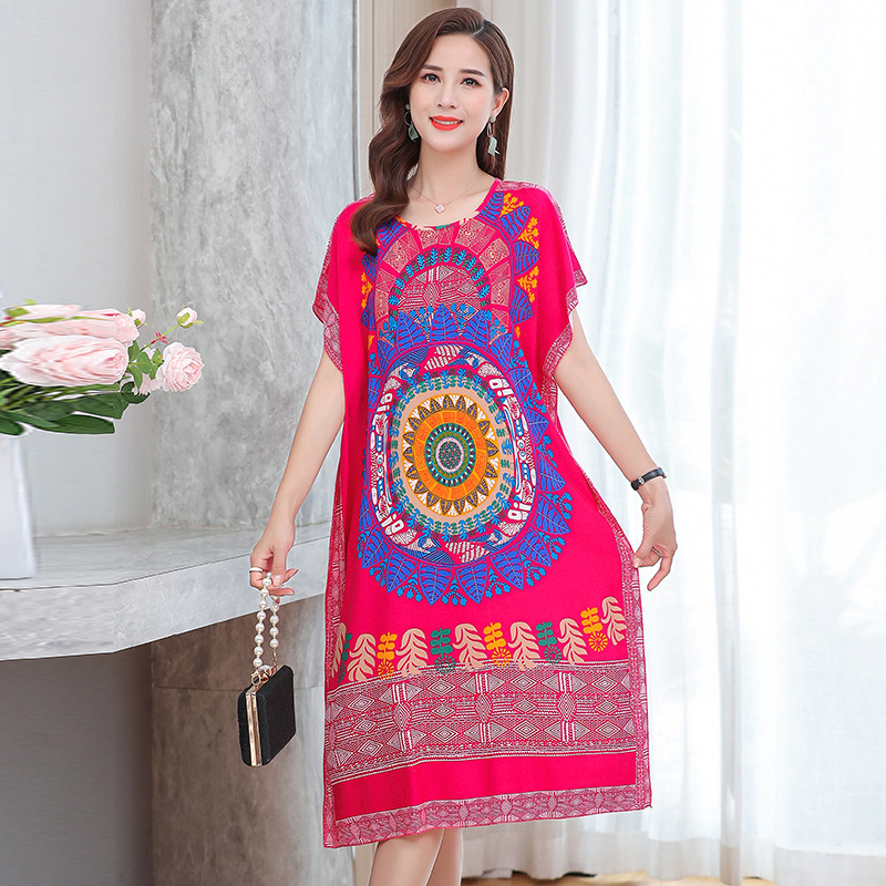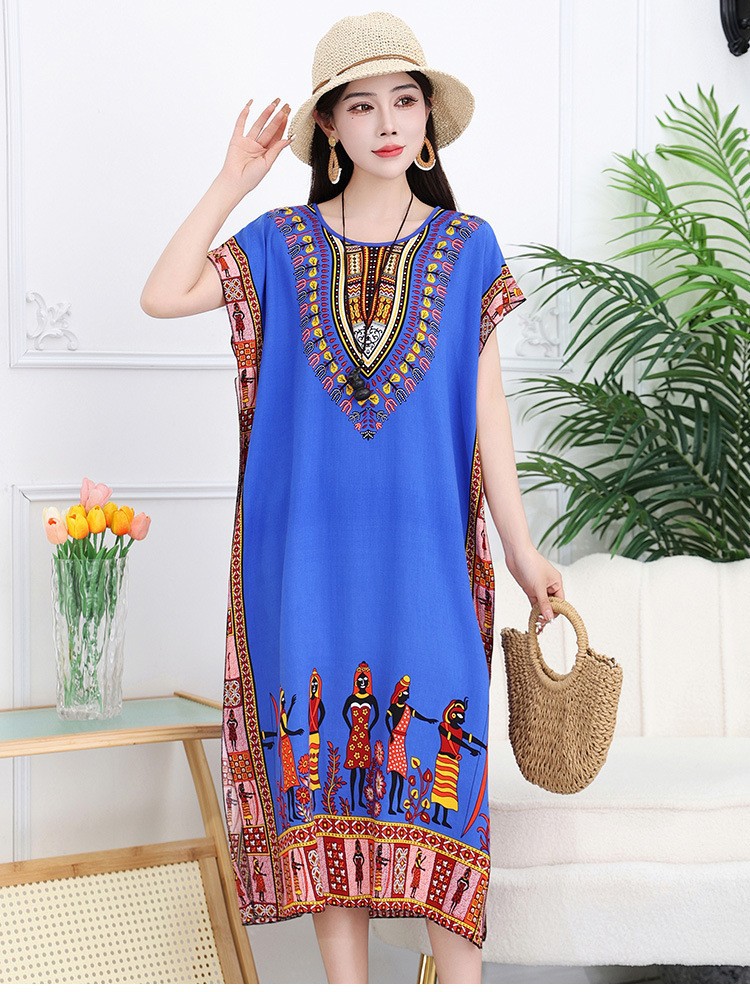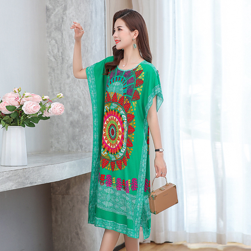 중간 길이 에스닉 스타일 잠옷 태국 해변 민소매 느슨한 플러스 사이즈 커버 오버 더 무릎 어머니 원피스