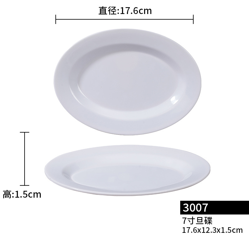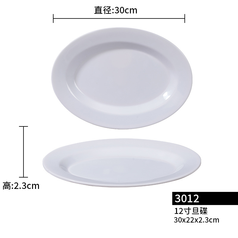 흰색 모조 도자기 타원형 생선 접시, 도매용 호텔 레스토랑 상업용 멜라민 두꺼운 플라스틱 타원형 대접시