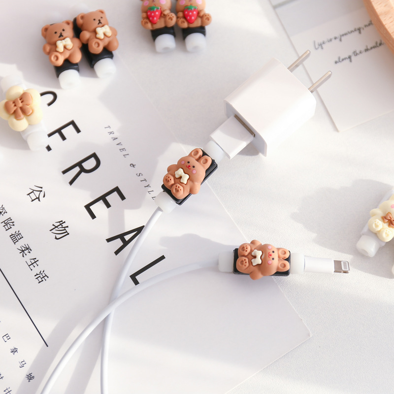 귀여운 라이트 베이지 데이터 라인 보호 커버 만화 휴대 전화 충전 라인 안티 브레이크 프로텍터 이어폰 라인 보호 쉘스토어 가기