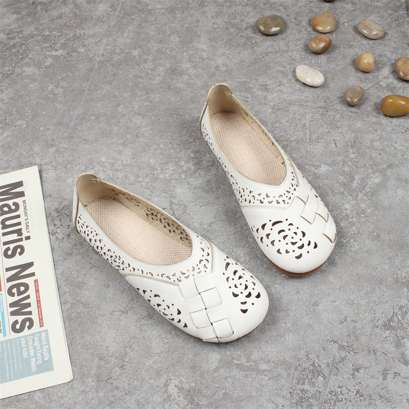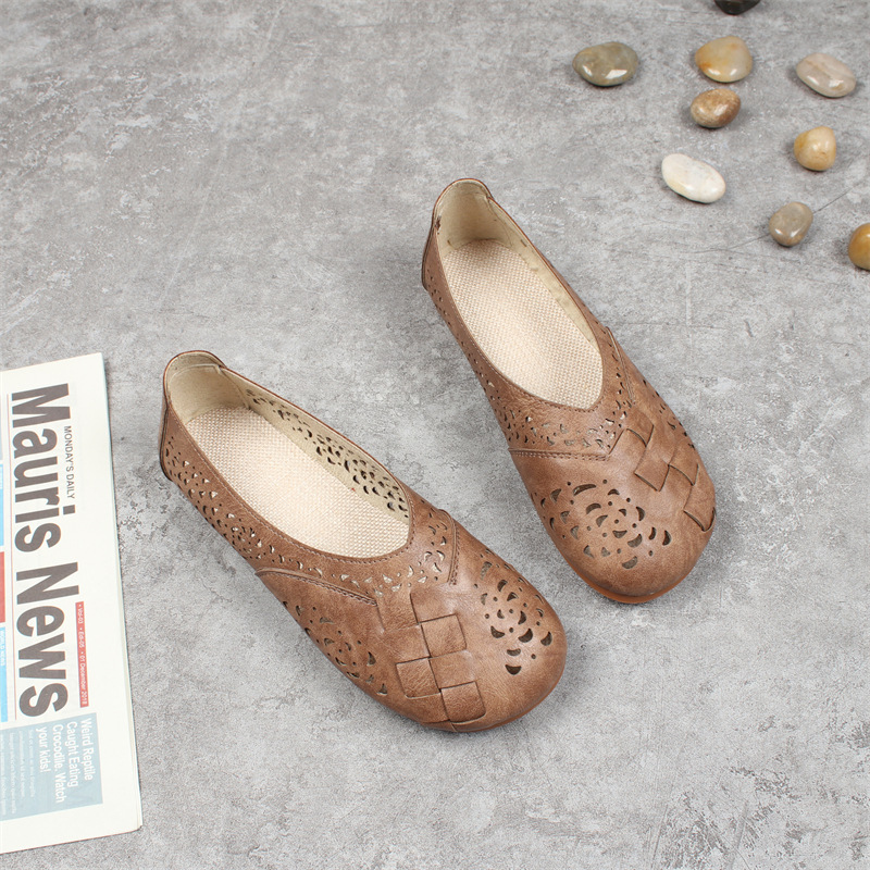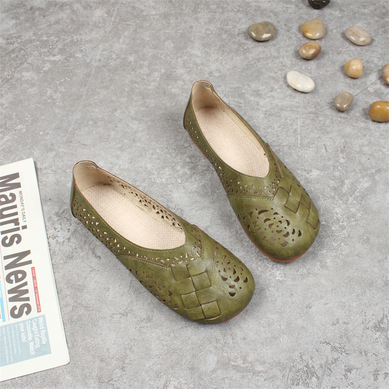 여름 새로운 모리 예술적 레트로 중공 구멍 샌들 플랫 라운드 발가락 게으른 편안한 캐주얼 로우 탑 여성 신발