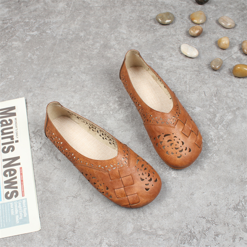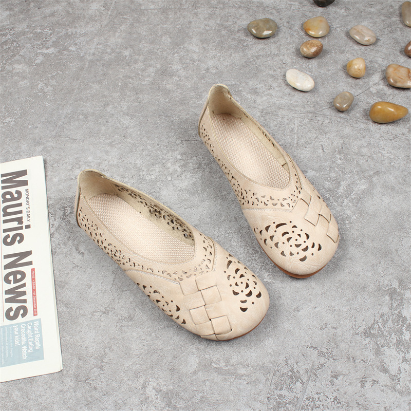여름 새로운 모리 예술적 레트로 중공 구멍 샌들 플랫 라운드 발가락 게으른 편안한 캐주얼 로우 탑 여성 신발스토어 가기