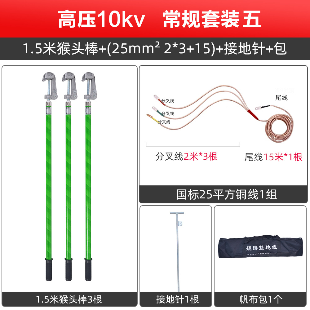 10kv 야외 고전압 접지 와이어 휴대용 단락 와이어 접지 원숭이 헤드 압축 라인 임시 접지 와이어스토어 가기