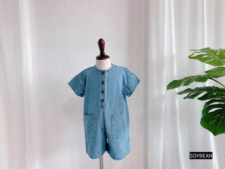 여름 여자 점프 수트 클래스 A 단색 청바지 한국 스타일 느슨한 아기 점프 수트 짧은 소년의 머리
