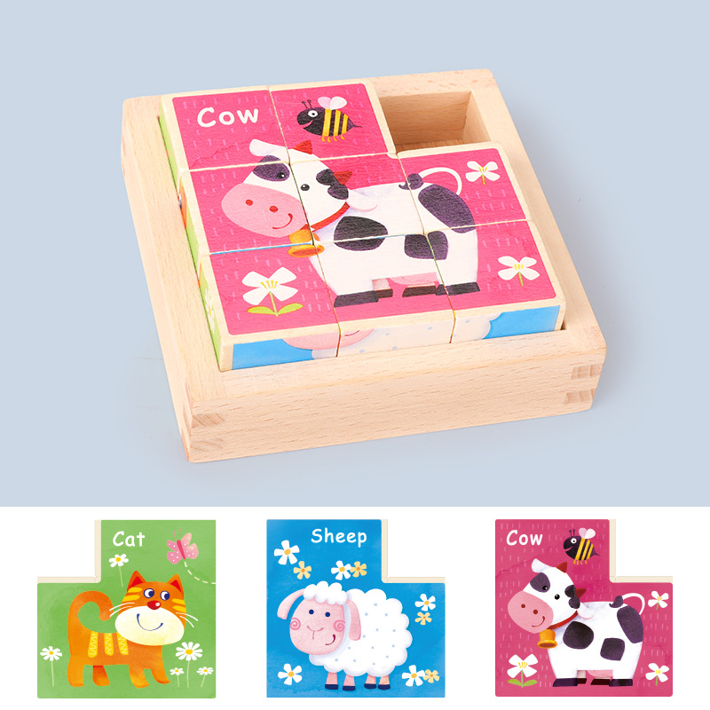 작은 손에 큰 손 교육 빌딩 블록 동물 9 6 면 그림 어린이 입체 동물 빌딩 블록 조기 교육 퍼즐 장난감
