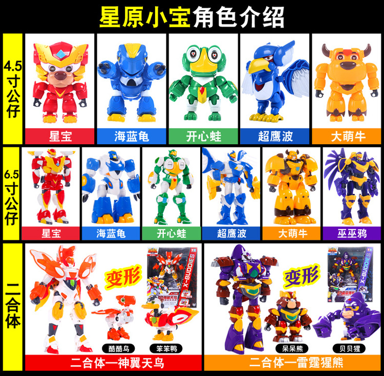 로봇 6.5 인치 싱바오 슈퍼 이글 웨이브 4.5 인치 가동 인형 시리즈 2 의 싱위안 샤오바오 1 메카 변형 풀 세트