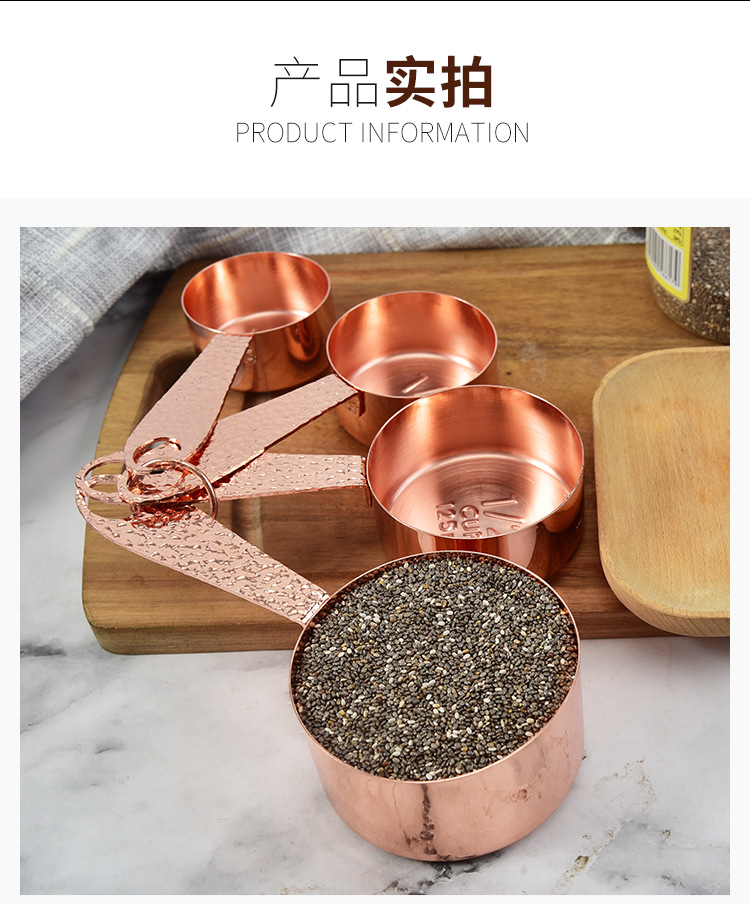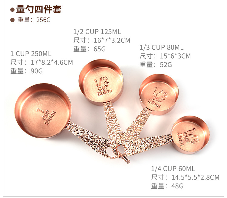 재고 로즈 골드 측정 스푼 4 종 세트 스테인레스 계량컵 4 종 세트 체중계 베이킹 측정 스푼