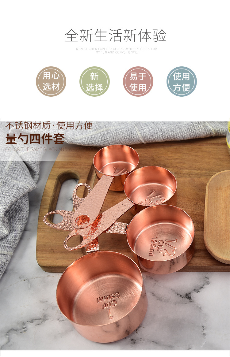 재고 로즈 골드 측정 스푼 4 종 세트 스테인레스 계량컵 4 종 세트 체중계 베이킹 측정 스푼스토어 가기