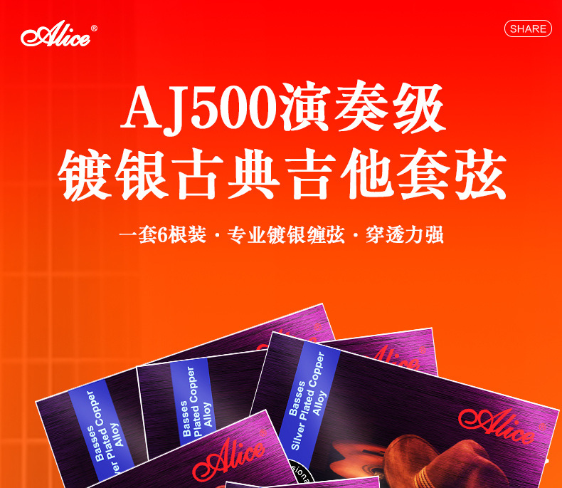 앨리스 AJ500 클래식 기타 줄 1 세트 6 나일론 줄 1 현 싱글 클래식 기타 액세서리스토어 가기