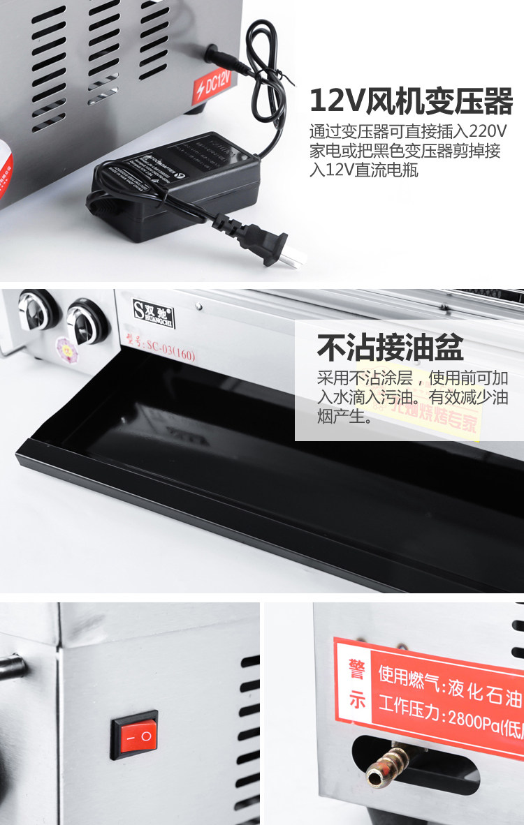 환경 보호 무연 바베큐 오븐 상업용 가스 LPG 가스 옥외 선반 구운 글루텐 쉬시 케밥 생선 오븐