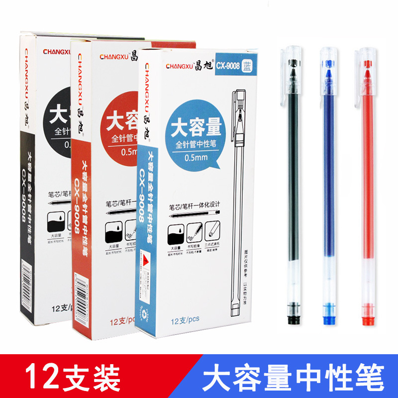 Changxu 대용량 젤 펜 긍정적 자세 속건 사인 펜 0.5mm 바늘 통합 펜 검정 빨강 파랑 9008