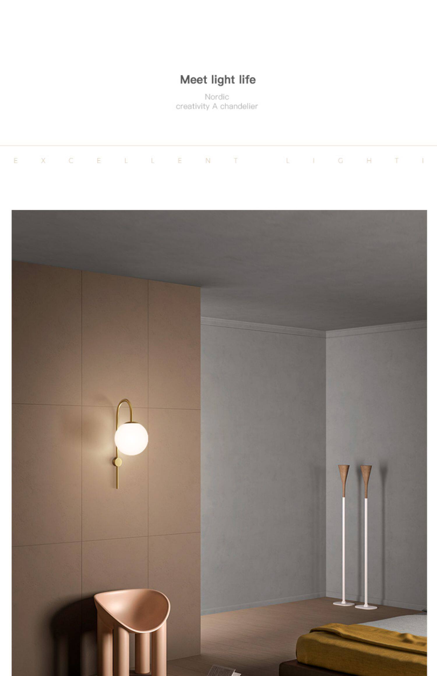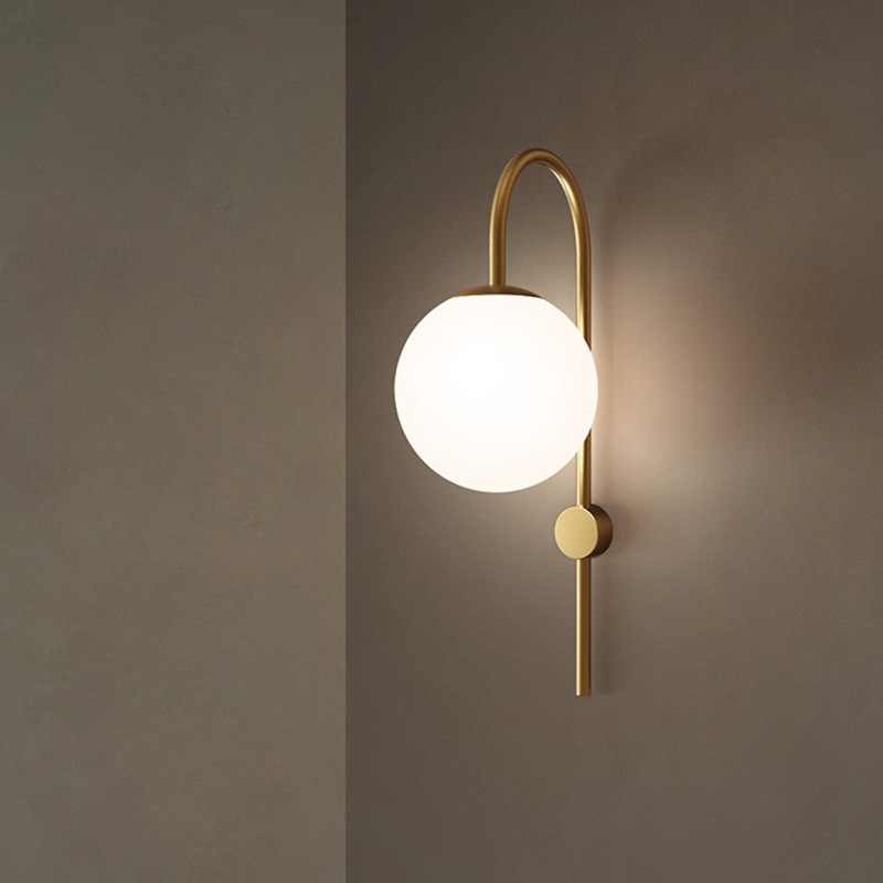 북유럽 침실 벽 램프 침대 옆 램프 개인화 된 콩 유리 벽 램프 창조적 인 통로 계단 거실 전체 구리 벽 램프스토어 가기