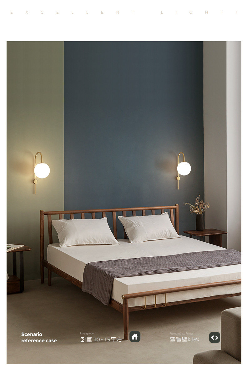 북유럽 침실 벽 램프 침대 옆 램프 개인화 된 콩 유리 벽 램프 창조적 인 통로 계단 거실 전체 구리 벽 램프