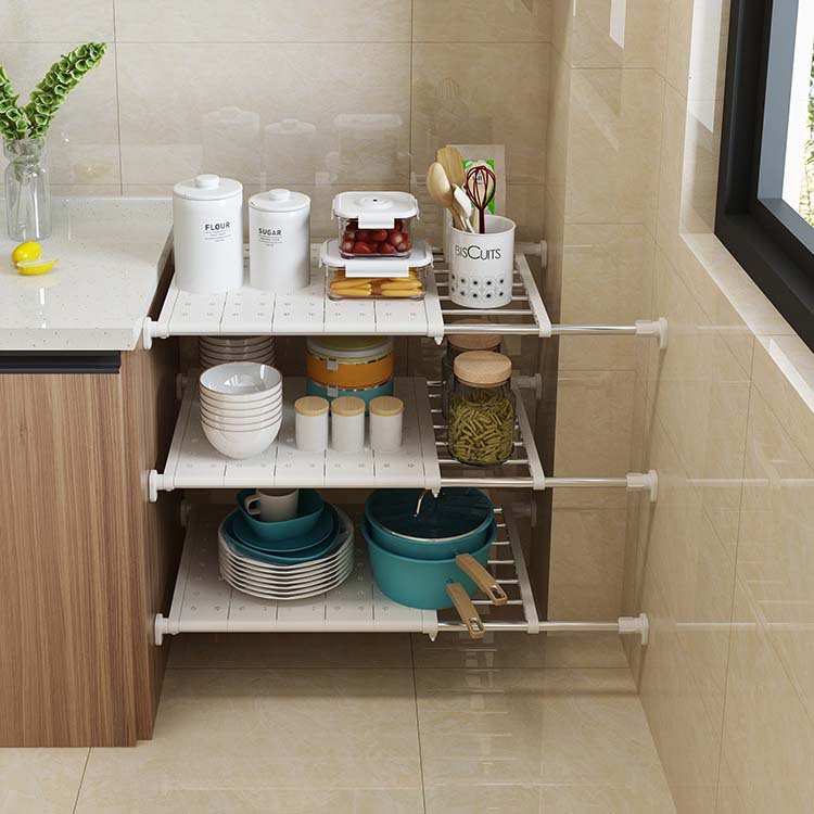 스테인레스 스틸 주방 캐비닛 스토리지 레이어드 하부 싱크 스토리지 랙 텔레스코픽 캐비닛 파티션 옷장 파티션 고정 랙
