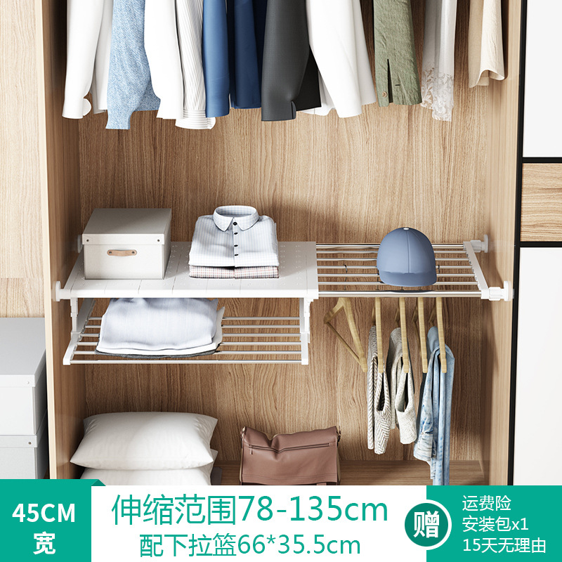 • 흰색 [스테인리스 스틸 폭 45cm] 텔레스코픽 길이 78-135cm (풀 바스켓 66*35.5 첨부)