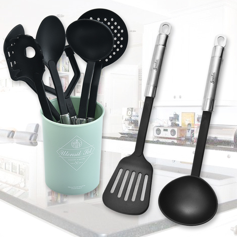 스테인레스 스틸 손잡이 나일론 주방 용품 세트 나일론 주방 용품 6 종 세트 요리 삽과 숟가락 주방 도구 재고스토어 가기