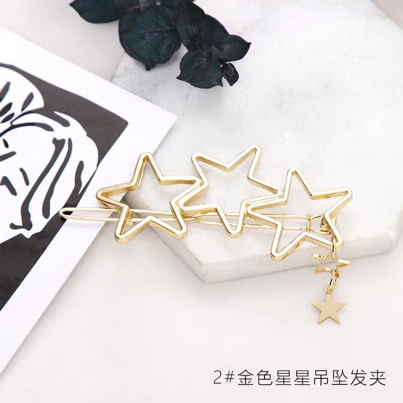 인터넷 유명인 다섯 개의 별 머리핀 골든 중공 하트 모양의 펜던트 사이드 클립 학생 소녀 한 글자 클립스토어 가기