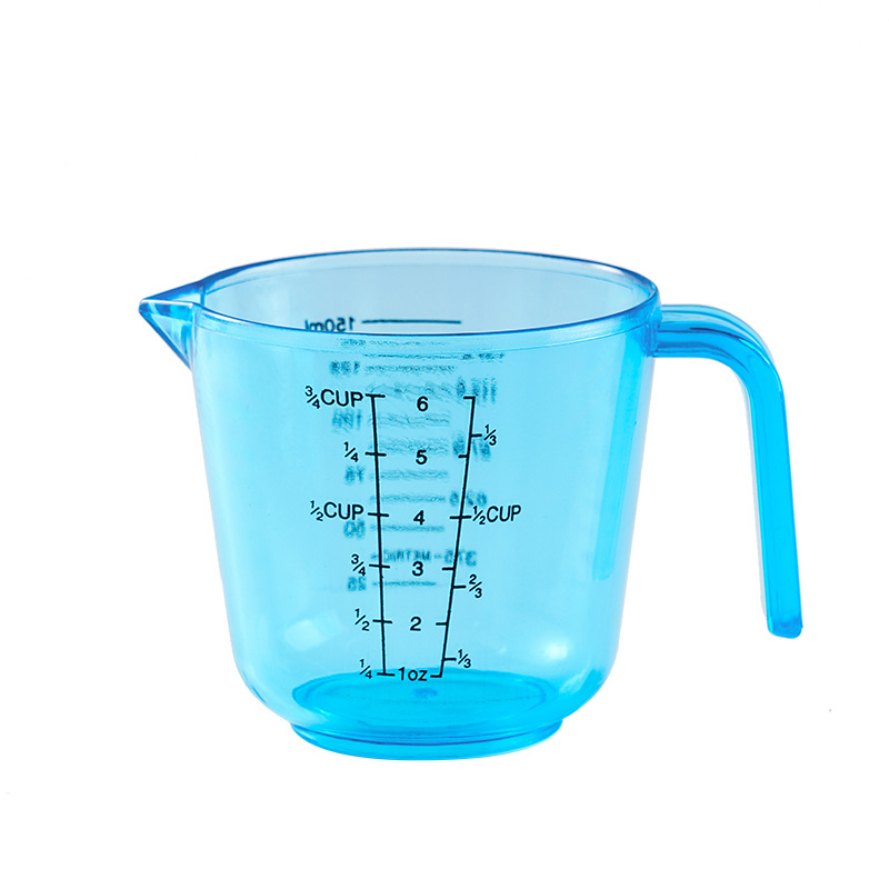공장 재고 PS 플라스틱 계량컵, 눈금 표시가 있는 150/300/600/1000ML 투명 계량컵, 베이킹 도구