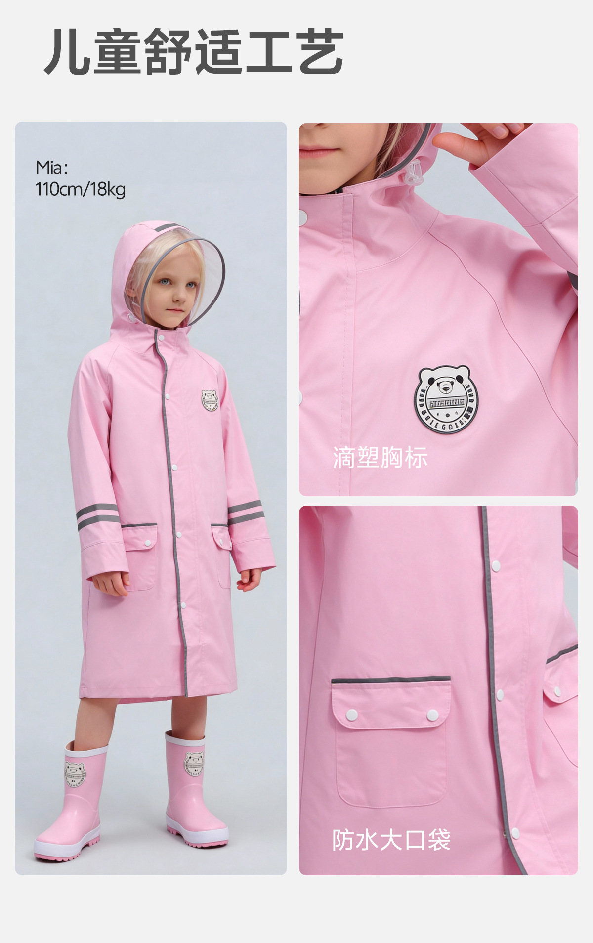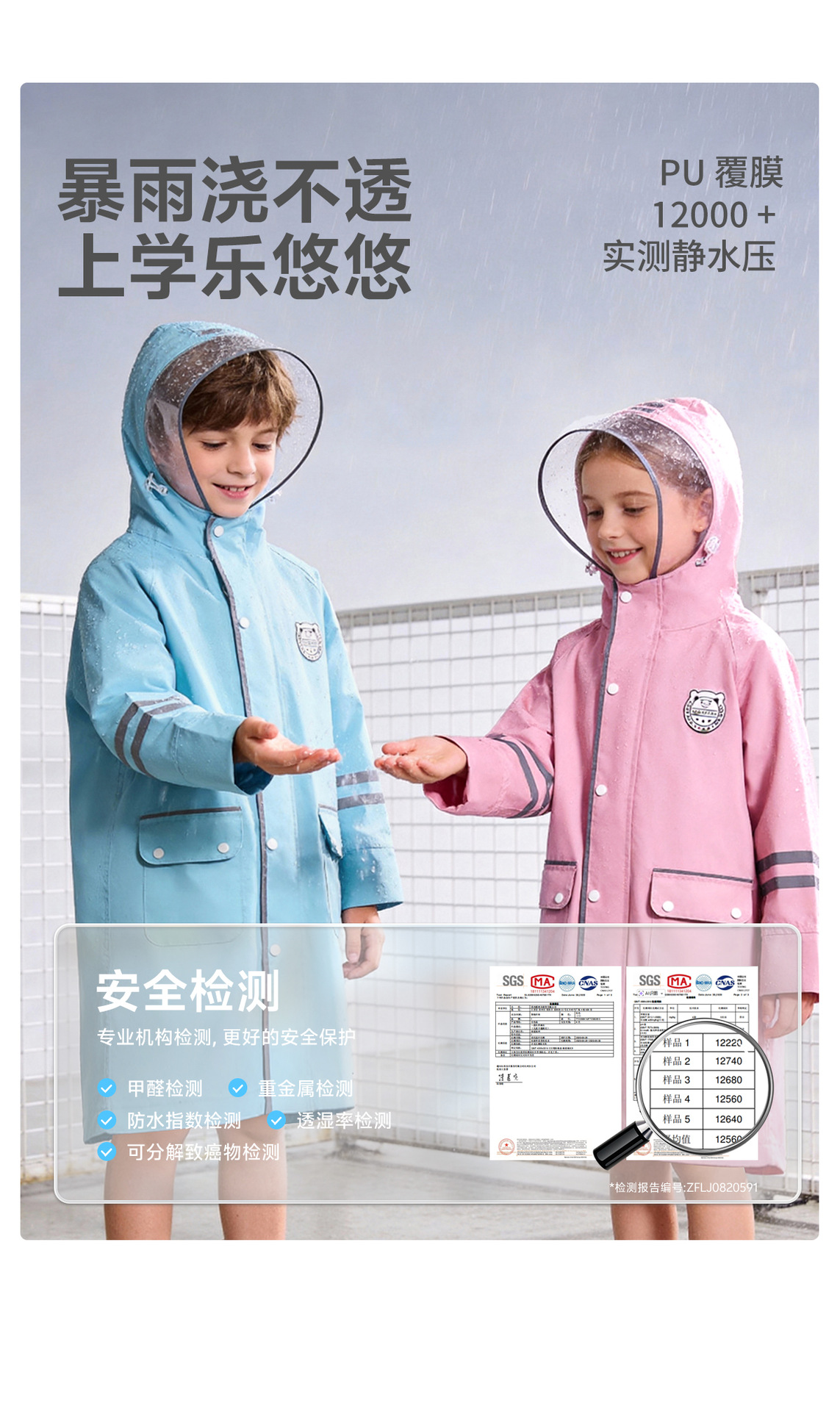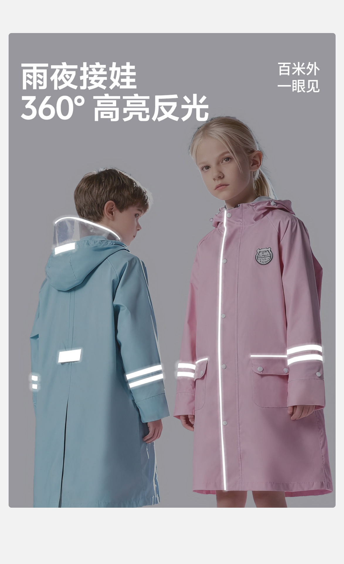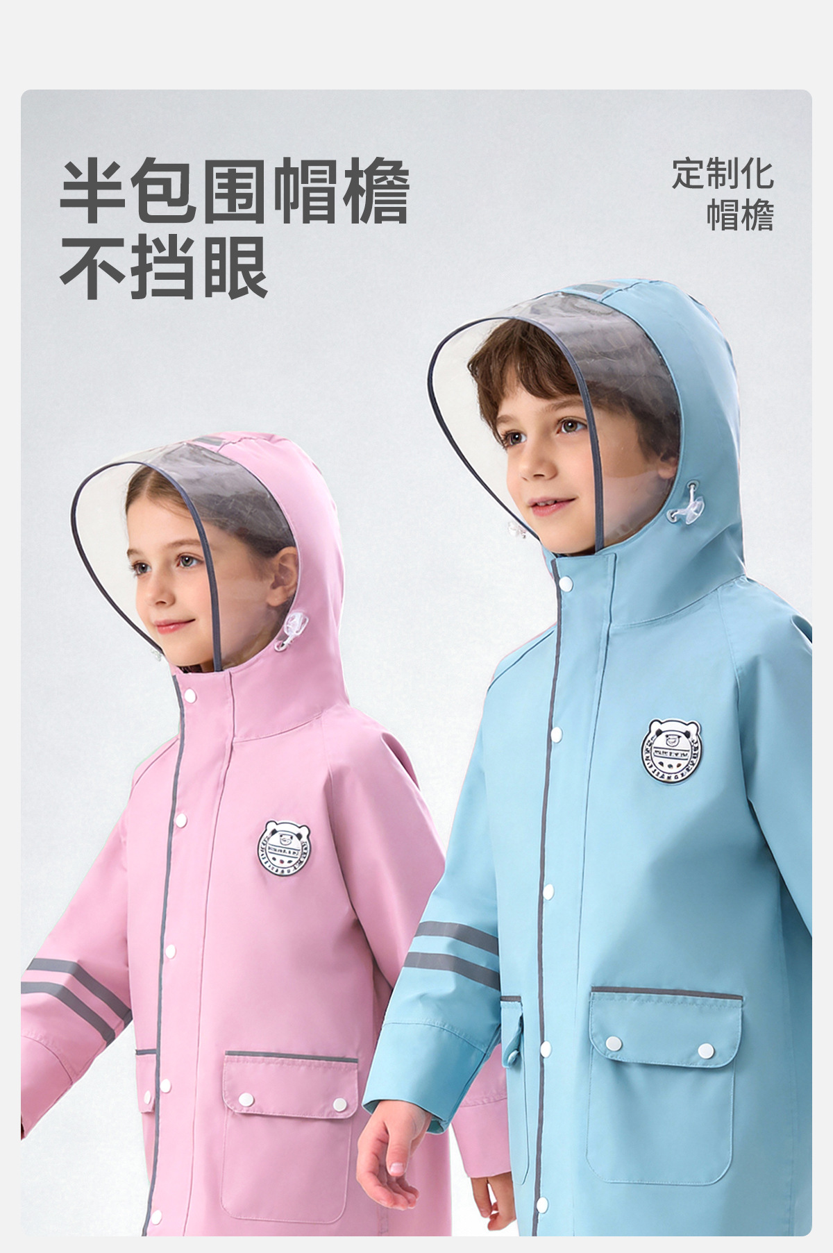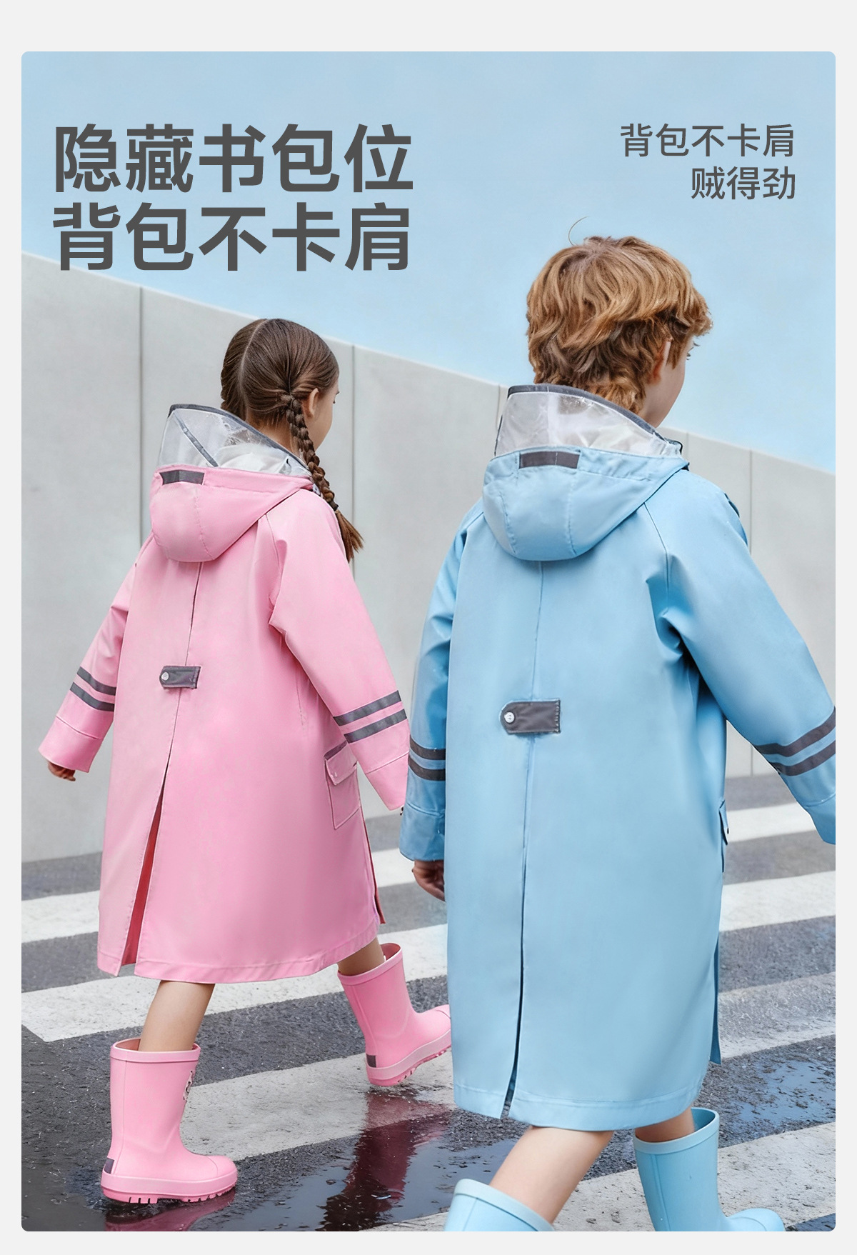 한국 인기 아동용 우비 초등학생 남아 유치원생 6-12세 통학용 롱형 가방 수납 가능 우비