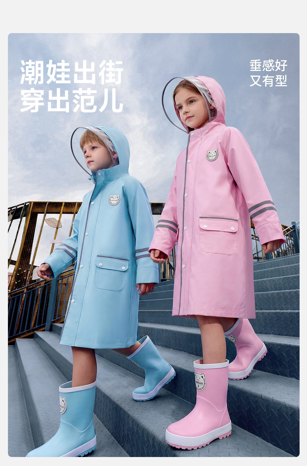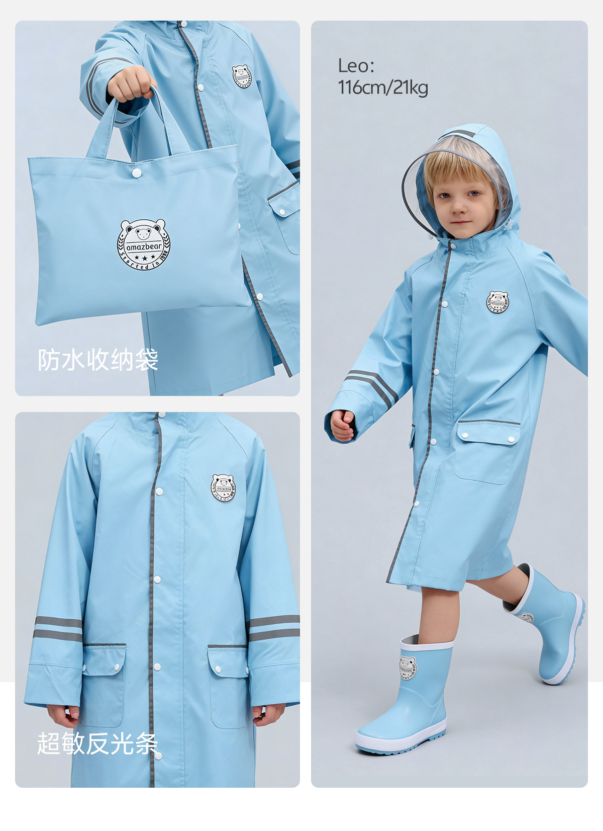 한국 인기 아동용 우비 초등학생 남아 유치원생 6-12세 통학용 롱형 가방 수납 가능 우비스토어 가기