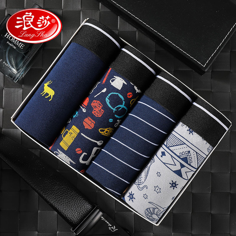 Longsha 속옷 남자 면 인쇄 반바지 선물 상자 권투 선수 반바지 권투 선수 반바지 면 통기성 반바지 머리 도매스토어 가기