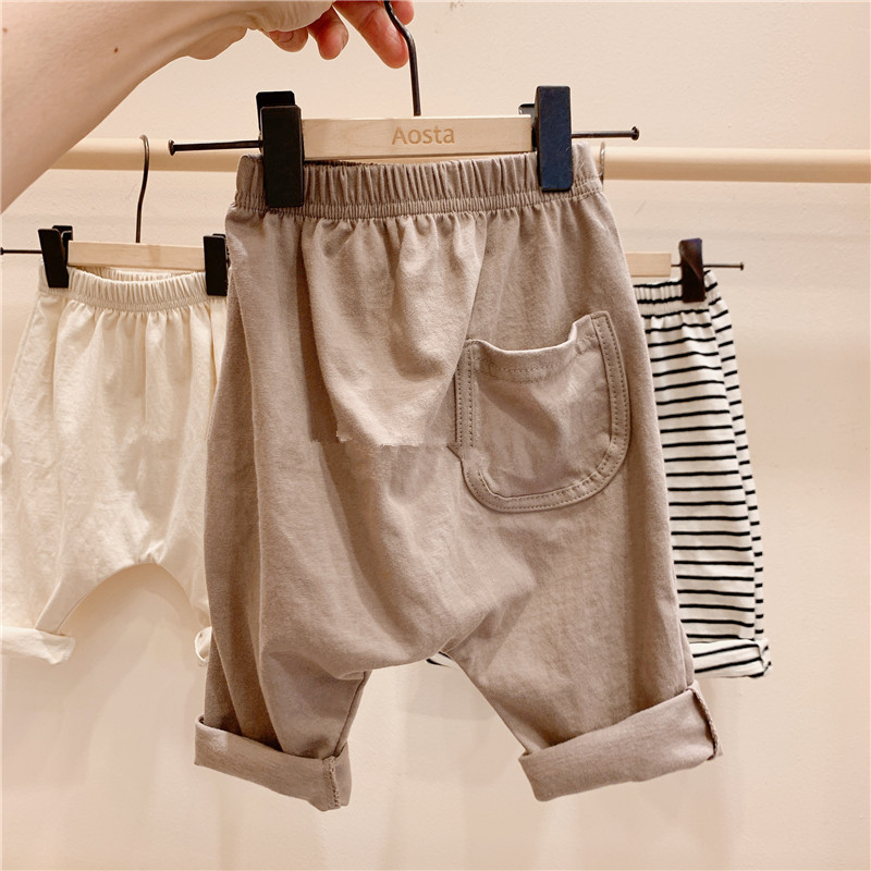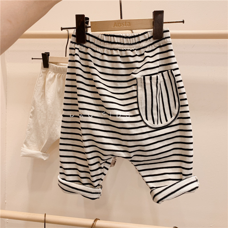 한국 스타일 유아 여름 착용 모든 매치 면 대형 PP 바지 느슨한 캐주얼 할란 바지 봄과 가을 남성과 여성의 보물 1