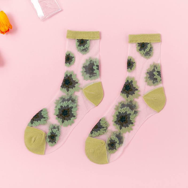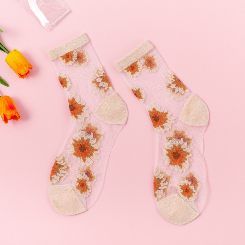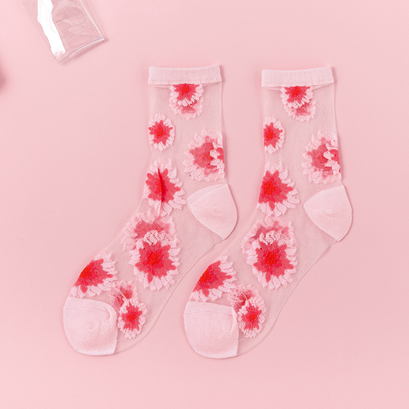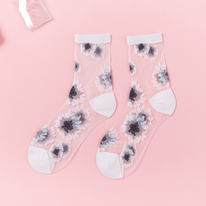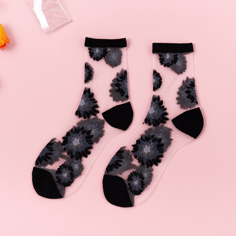 봄과 여름 유리 스타킹 숙녀 얇은 추세 큰 꽃 투명 크리스탈 양말 튜브 카드 실크 양말 도매스토어 가기