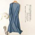 태양 보호 셔츠 여성 아우터 아이스 실크 니트 가디건 2022 새로운 중간 길이 느슨한 에어컨 재킷 여름 태양 보호 의류