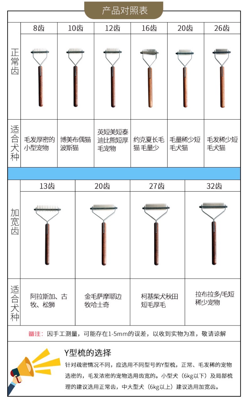 할인이 있습니다! Lebi Y-comb 애완 동물 폐기물 머리 빗 바닥 머리 빗 고양이와 개 오픈 매듭 빗 황금 머리 테두리 동물 축산 플로팅/폐기물 머리스토어 가기