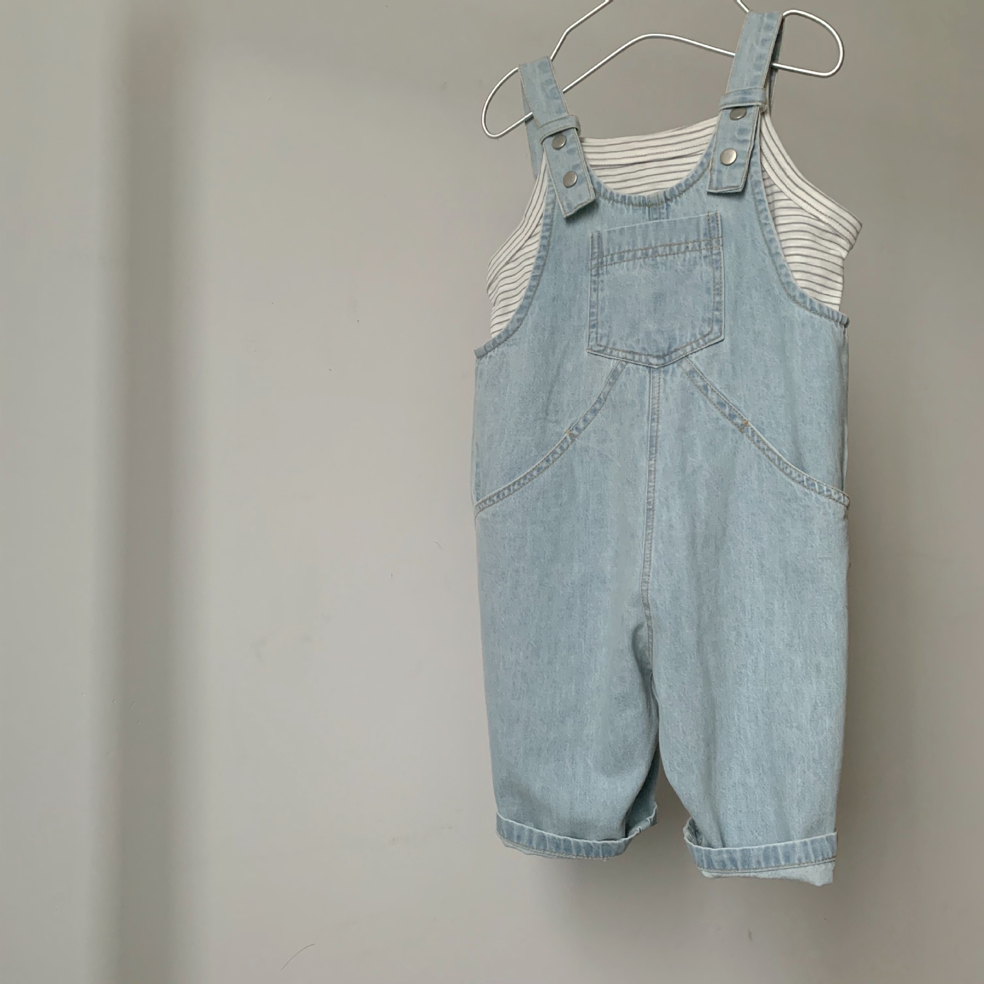 남성과 여성을 위한 GL-키즈 한국 스타일 여름 새로운 어린이 면 얇은 데님 멜빵 바지 복고풍 느슨한 멜빵 바지