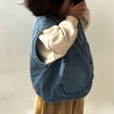 한국 스타일 인스타 트렌드 아동복 봄 가을 신상 조끼, 포켓이 넉넉하고 활용도 높은 캐주얼 데님 조끼 2026스토어 가기