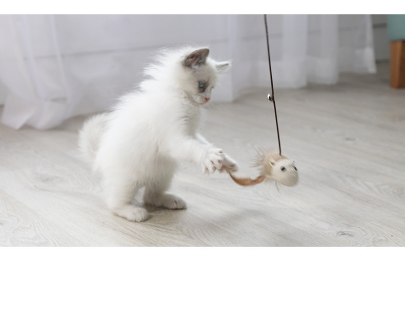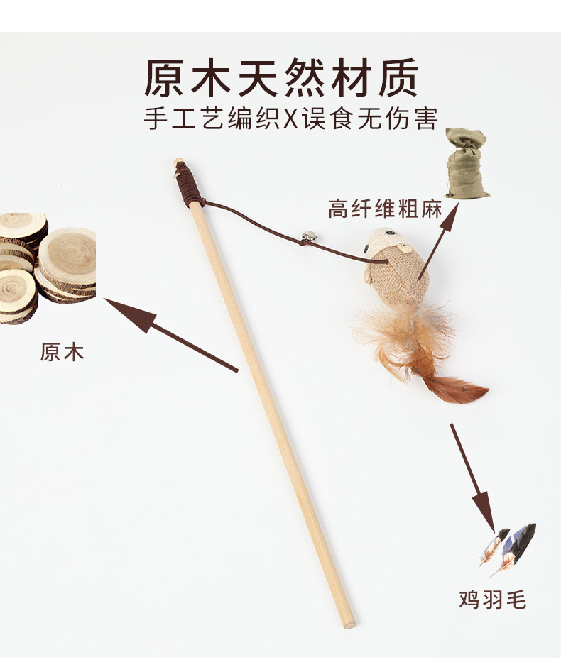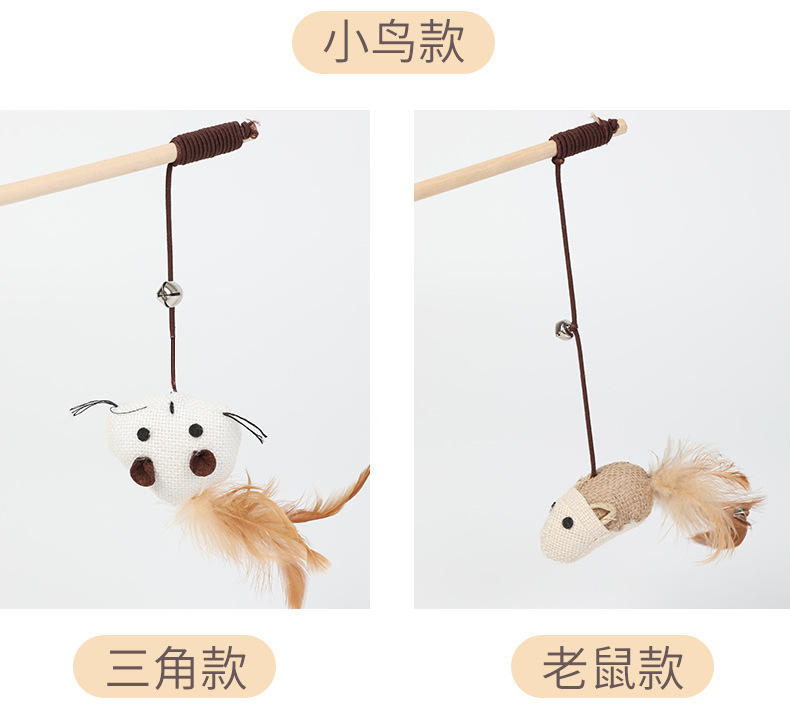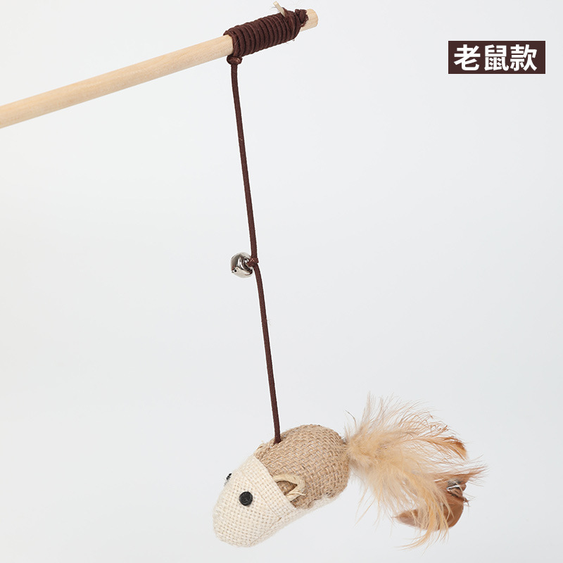 애완용품 만화 캐릭터 쥐 모양 고양이 놀리개 막대 나무 손잡이 고양이 놀리개 막대 제조업체 기성품 고양이 놀리개 도구 고양이