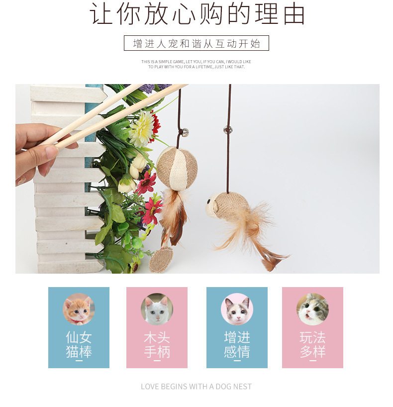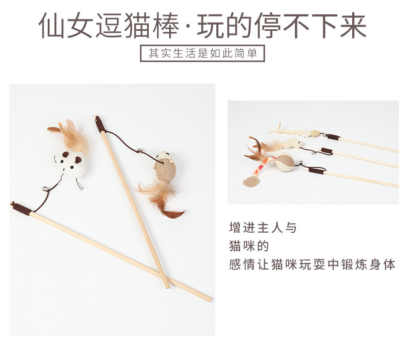 애완용품 만화 캐릭터 쥐 모양 고양이 놀리개 막대 나무 손잡이 고양이 놀리개 막대 제조업체 기성품 고양이 놀리개 도구 고양이스토어 가기