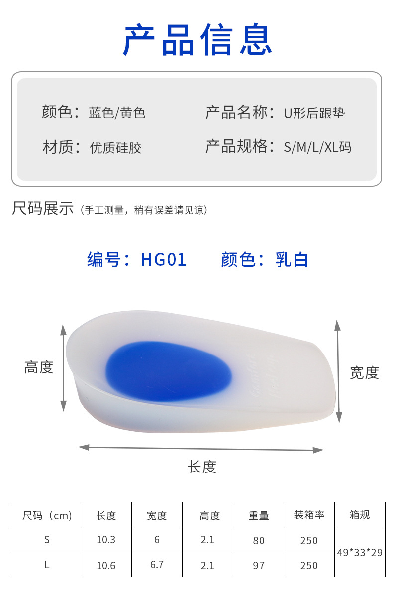XL码42-47:长11.3*宽6.7*高2.1cm,100g/双(定制款)