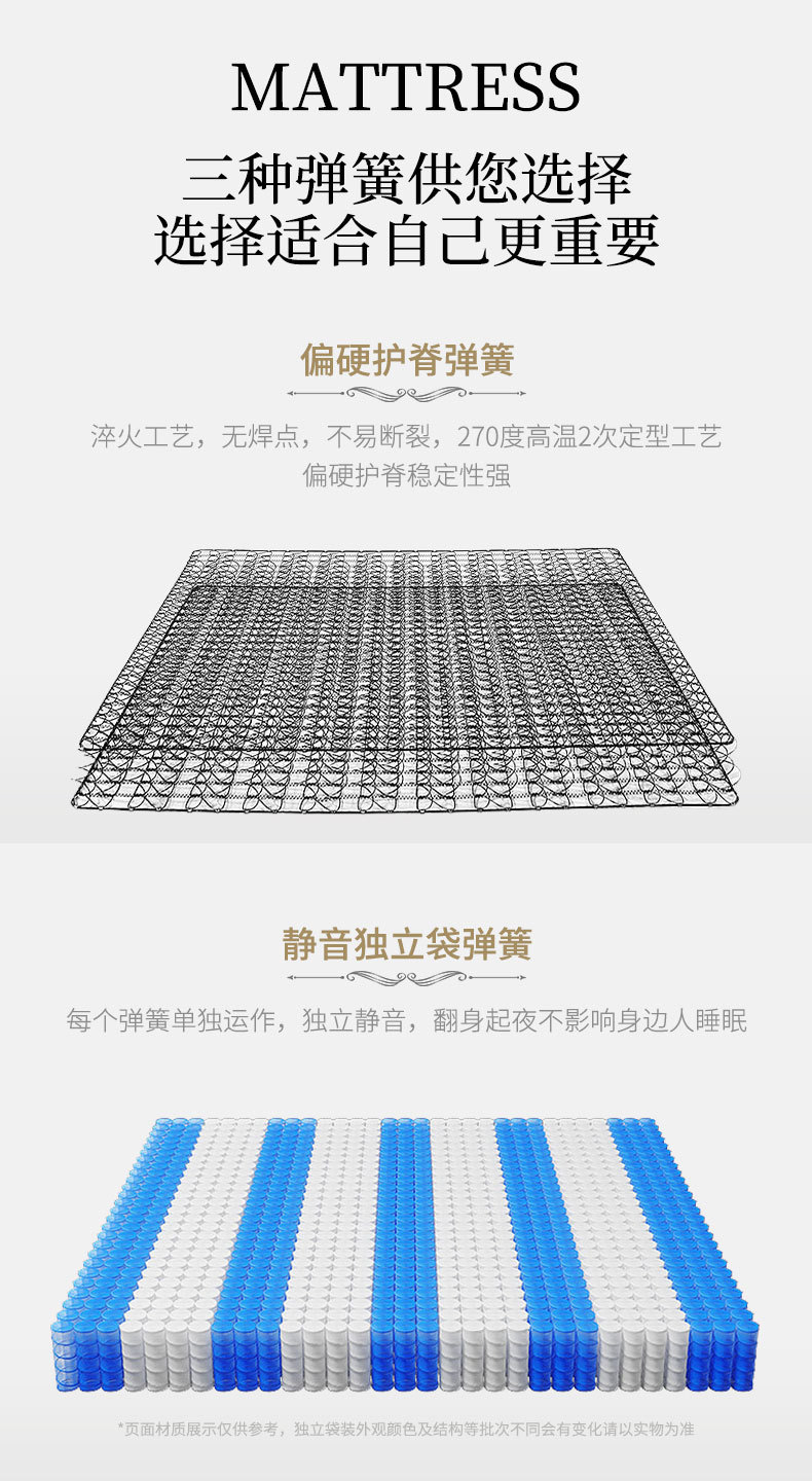• 모델 B 22cm: 독립 포켓 스프링 + 라텍스 + 니트 원단(부드럽고 편안함)