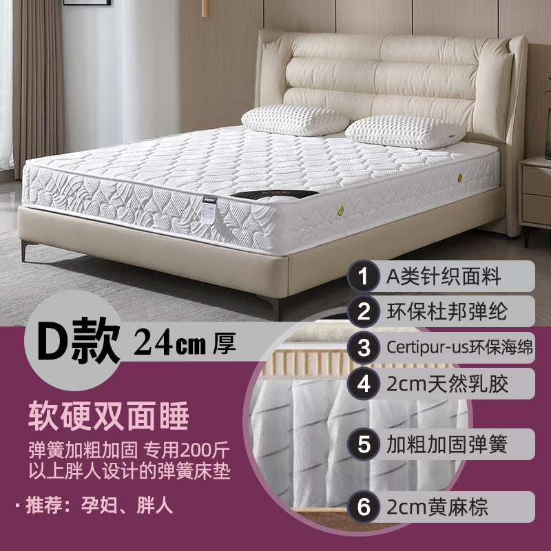 • 모델 D 24cm: 독립 포켓 스프링 + 라텍스 + 황마 브라운 + 니트 원단(소프트 및 하드)