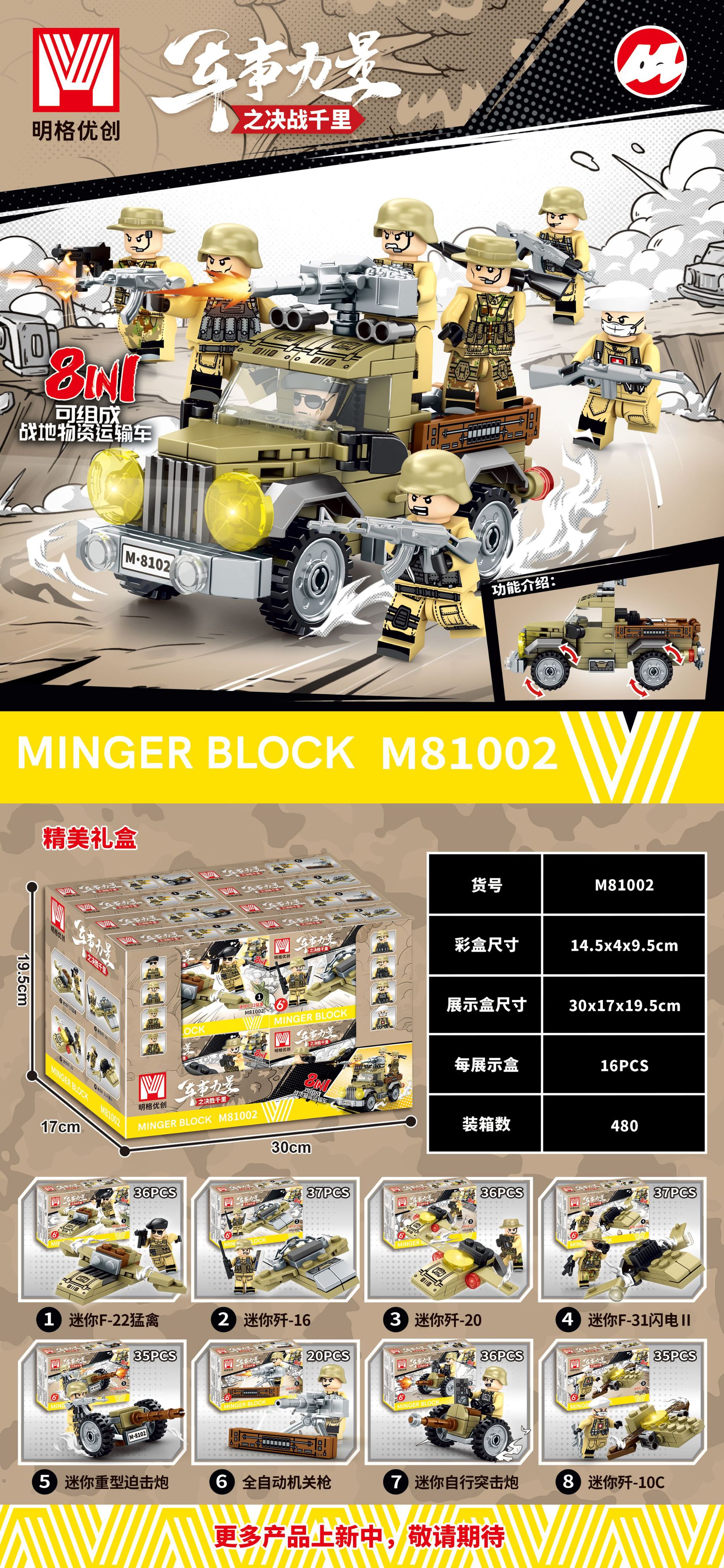 M81002军事装备,一个套盒16小盒,有8款,每款2盒